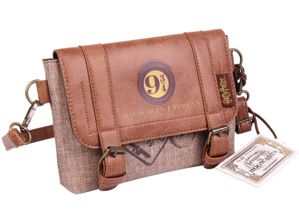 Velice atraktivní a praktická taška v hnědé barvě s přezkami a se zapínáním na cvoky. Taška se může nosit přes rameno, nebo okolo pasu. Na přední straně je vyobrazený znak kouzelného nástupiště 9 a 3/4 z filmové ságy Harry Potter.