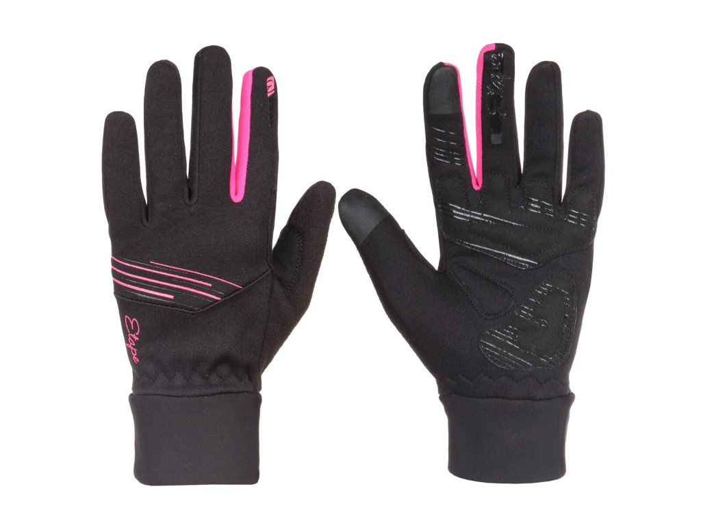 Díky sportovním rukavicím Etape Jasmine WS+, které jsou vybaveny technologií SmartTouch, je možné ovládat displeje mobilních telefonů, tabletů, MP3 přehrávačů, kamer, fotoaparátů nebo navigací. Můžete tedy pracovat s vaším zařízením s dotykovým displejem v jakémkoli prostředí bez nutnosti sundávat rukavice. Díky tomu jsou rukavice vhodné pro sport i volný čas. SoftShell je elastický materiál odolný větru a vodě. Díky třívrstvé struktuře nabízí maximální komfort a ochranu. Vnitřní vrstva je tvořena funkční membránou odolnou proti větru a vodě (vodní sloupec 10 000 mm, index prodyšnosti 10 000 g/m2 /24 h). Vnější vrstvu tvoří vodoodpudivý materiál s elastickými vlákny, který rychle schne. Dámské rukavice Etape Jasmine WS+ jsou navržené pro použití při teplotách -10 °C až 5 °C. Jasmine WS+: - materiály SoftShell s membránou a zateplením - ovládání dotykového displeje SmartTouch - anatomicky tvarovaná dlaň - silikonová protiskluzová úprava na dlani i na prstech - fleece na palci pro otírání potu - zesílení mezi palcem a ukazovákem - prodloužené elastické zápěstí - teplotní rozsah: -10 °C až 5 °C