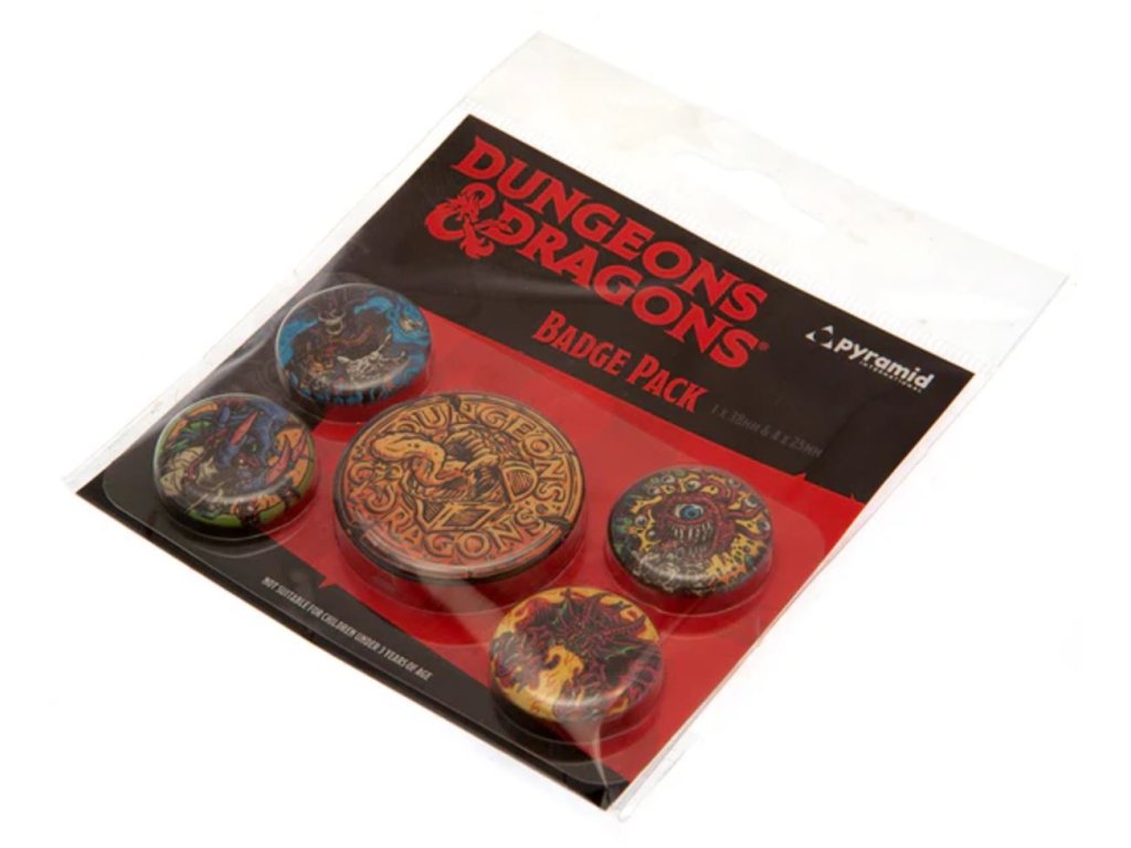 Oficiální produkt - placky (odznaky) set z katalogu výrobků s logem, obrázky a grafikou fantasy hry Dungeons & Dragons.