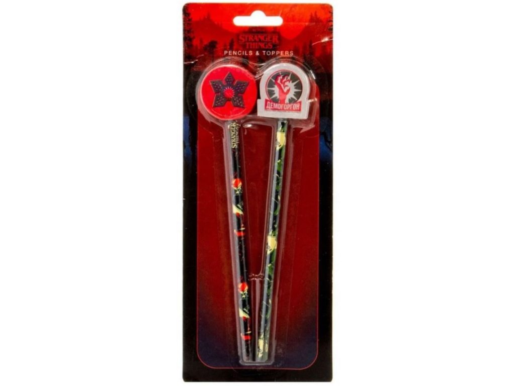 Oficiální produkt, set 2 tužek s 2D gumou z katalogu zboží s licencí populárního seriálu Stranger Things od internetové streamovací společnosti Netflix.
