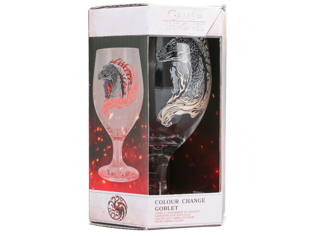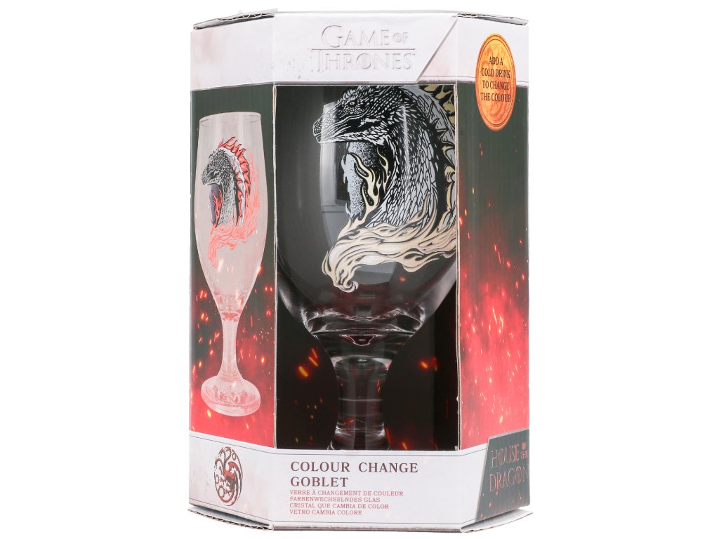 Oficiální produkt - proměňovací sklenice z katalogu výrobků s licencí populárního seriálu House of Dragon (Rod draka) od Game of Thrones (Hra o trůny).
