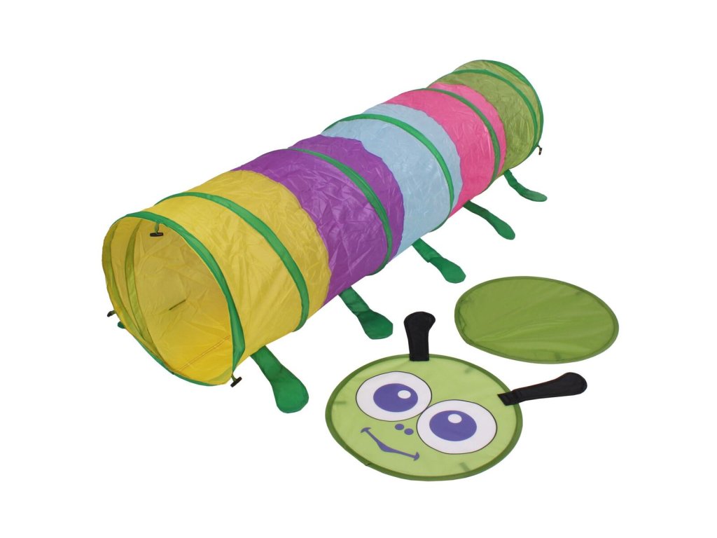 Všechny děti si zamilují prolézací tunel Tunnel Caterpillar s motivem veselé housenky. Lehký a skladný tunel zprostředkuje dětem spoustu bezpečné zábavy a usměrní jejich ohromnou energii. Prolézačka navíc rozvíjí koordinaci rukou a nohou a stimuluje celkovou pohyblivost, která je tak důležitá pro zdravý rozvoj dětí. Barevná stěna jednovrstvého tunelu je vyrobena z prodyšné polyesterové látky a zapošitého spirálového drátu. Délka tunelu je téměř 150 cm, průměr průlezu je 45 cm a hmotnost pouhých 580 g. Tunnel Caterpillar se snadno rozloží i sbalí během několika sekund do příslušného sáčku a dobře drží svůj původní tvar. Lehká tkanina se snadno čistí, stačí použít vlhký hadřík. Zprostředkujte dětem zábavu na zahradě nebo doma s housenkovou prolézačkou. Upozornění: Nepoužívejte prolézací tunel na hrubých a drsných plochách, jako je beton a dlažba. Obrázek je pouze ilustrativní a barevná varianta se může lišit. Dodáváme dle aktuálních skladových zásob.
