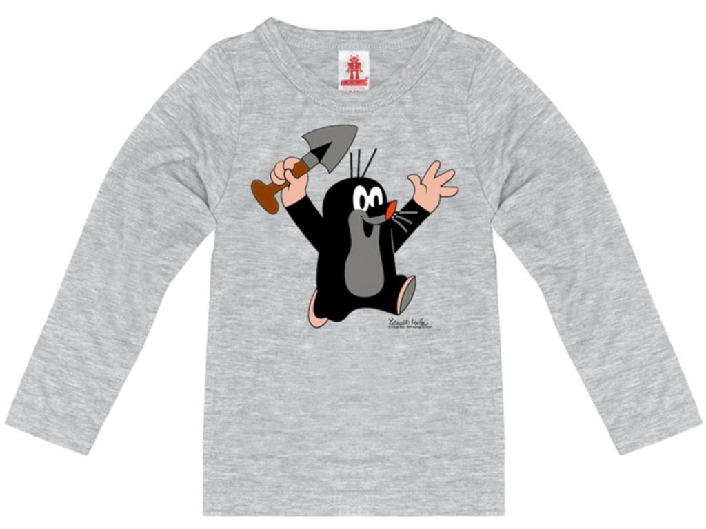 Šedé dětské tričko s dlouhým rukávem a motivem kreslené postavičky Krtek.