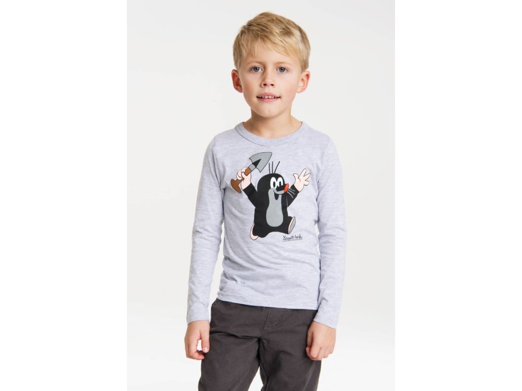 Šedé dětské tričko s dlouhým rukávem a motivem kreslené postavičky Krtek.