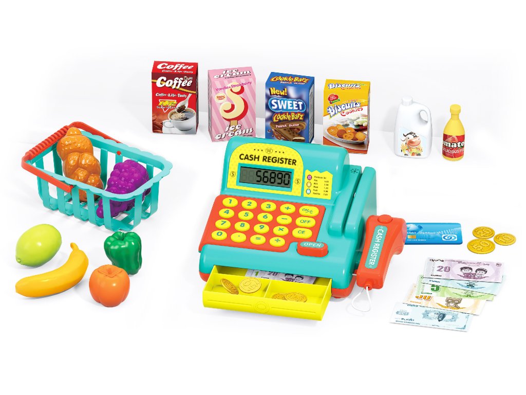 Pokladna s efekty. Velikost 20x16x11cm. Baterie 2xAA není součástí