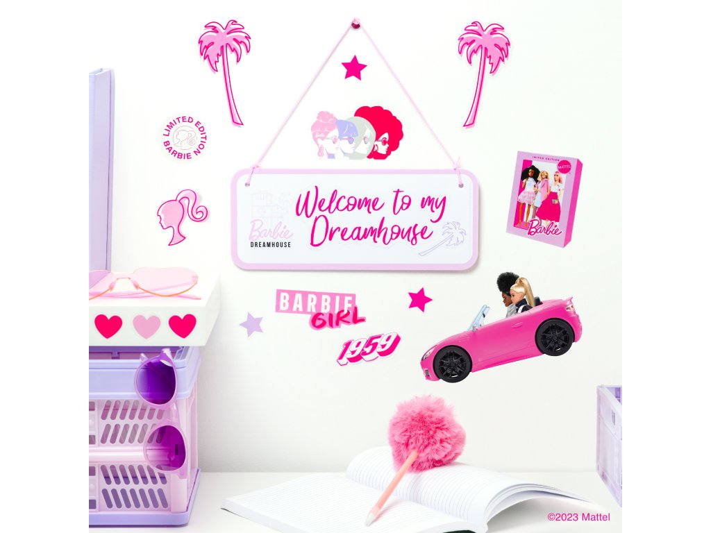 Oficiální produkt - cedule a doplňkové zboží z katalogu zboží se znakem a grafikou panenky Barbie od Mattel.