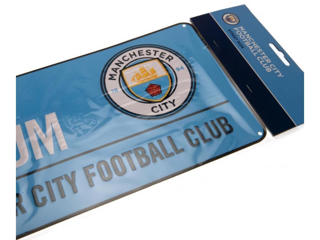 Oficiální produkt - cedule na zeď z katalogu výrobků se znakem, grafikou v klubových barvách a licencí slavného fotbalového klubu FC Manchester City.