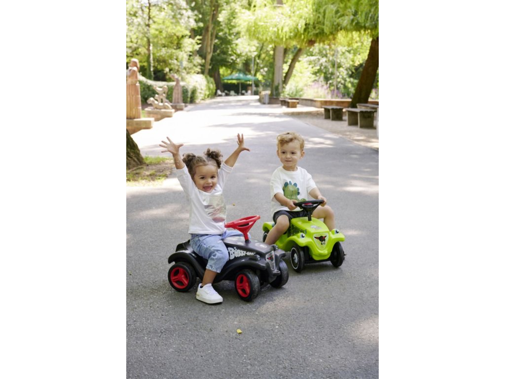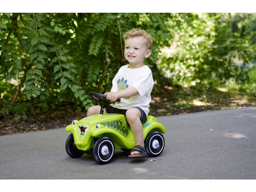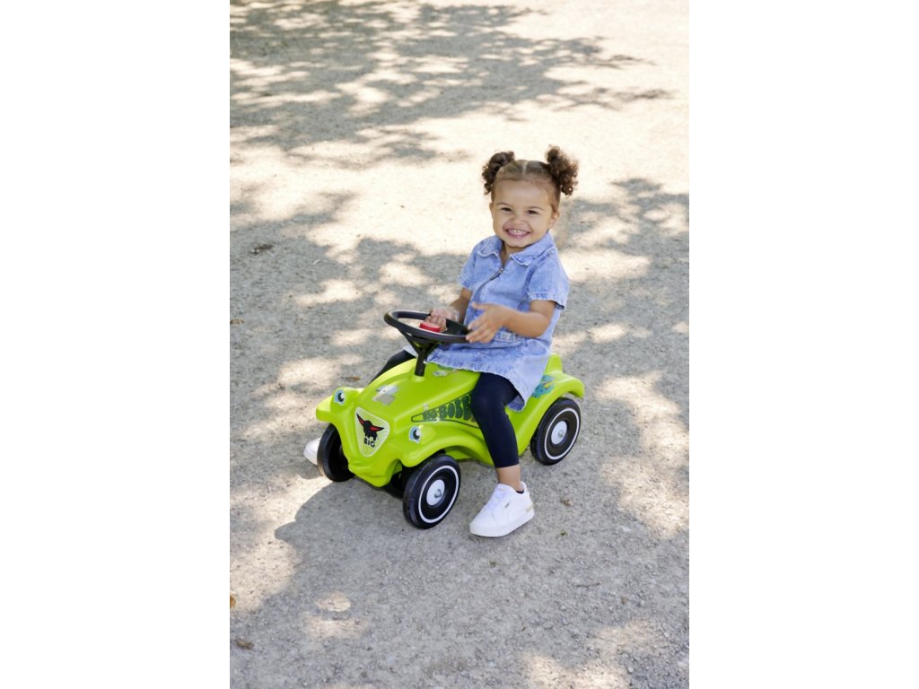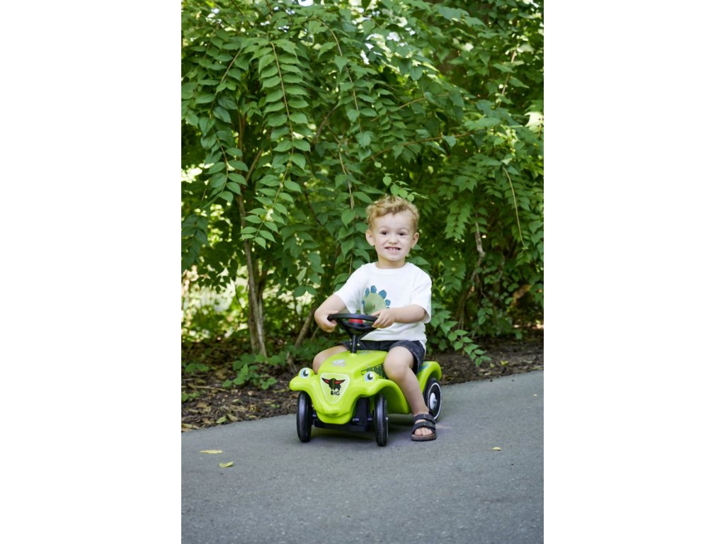 Odstrkovadlo s klaksonem, obrázky dinosaurů, ve veselé zelené barvě. Pevný, robustní plast. Nosnost 50 kg. Rozměry: 58 x 30 x 38 cm.