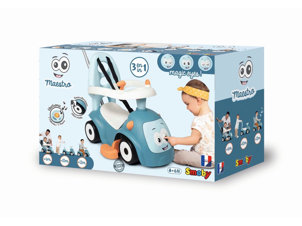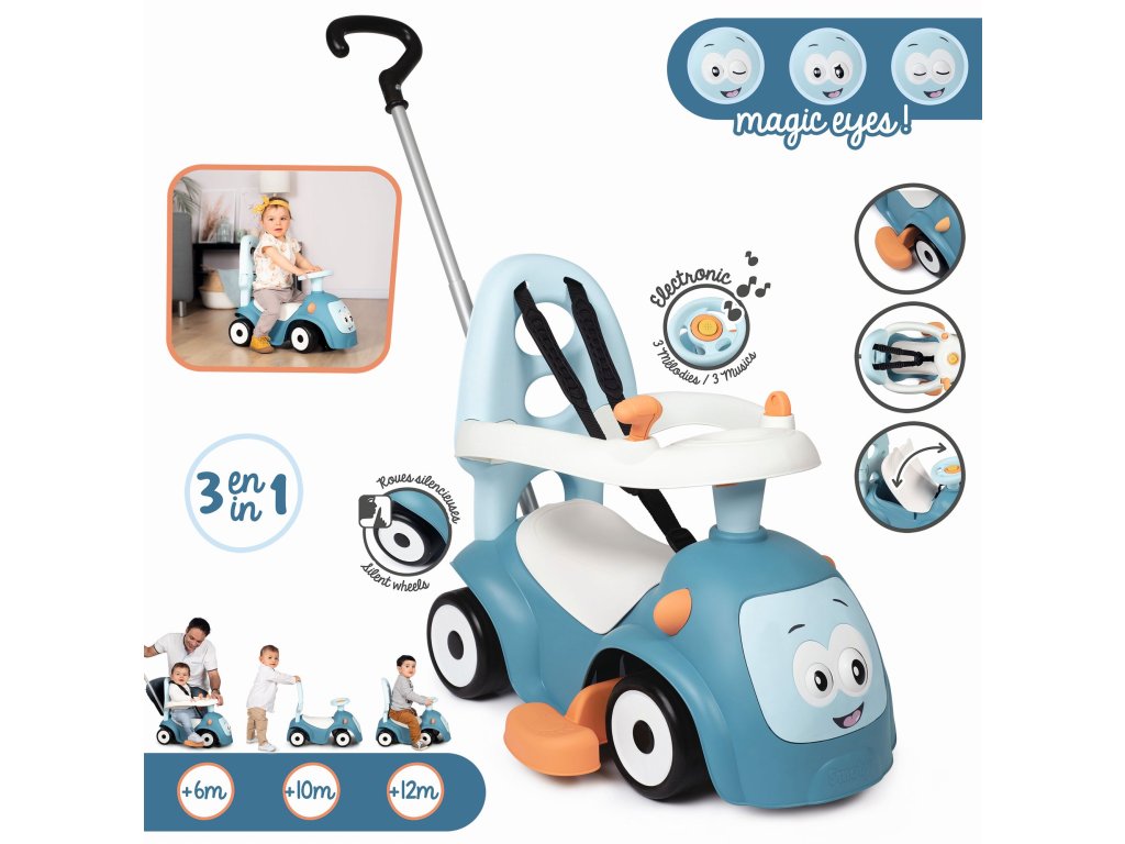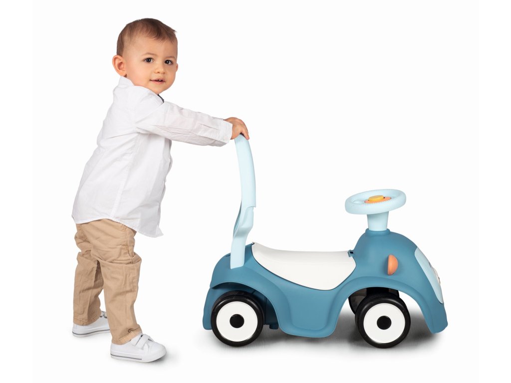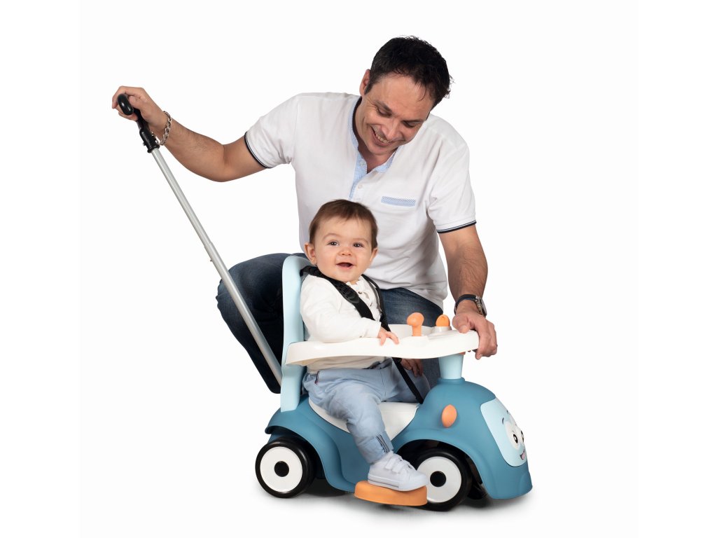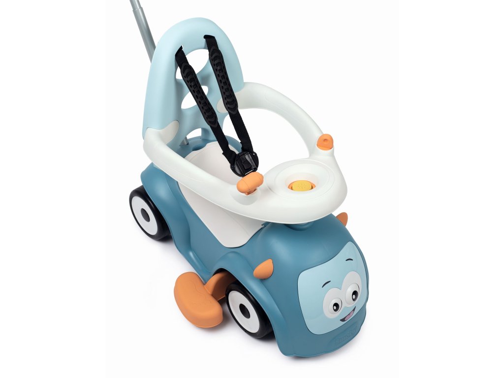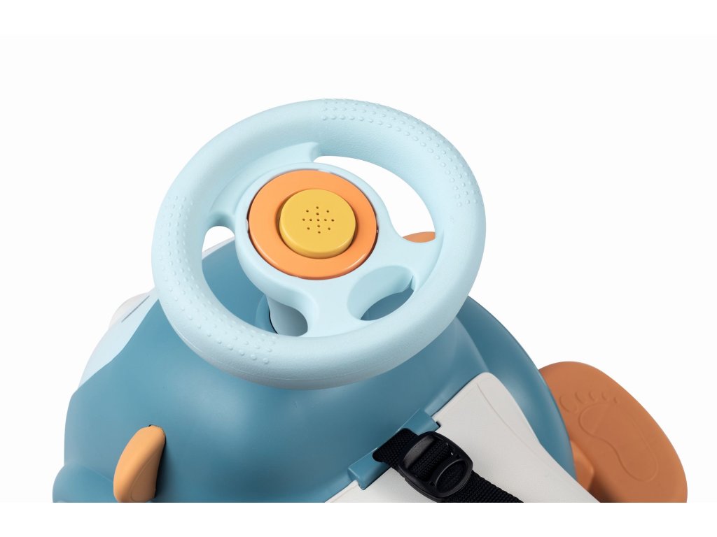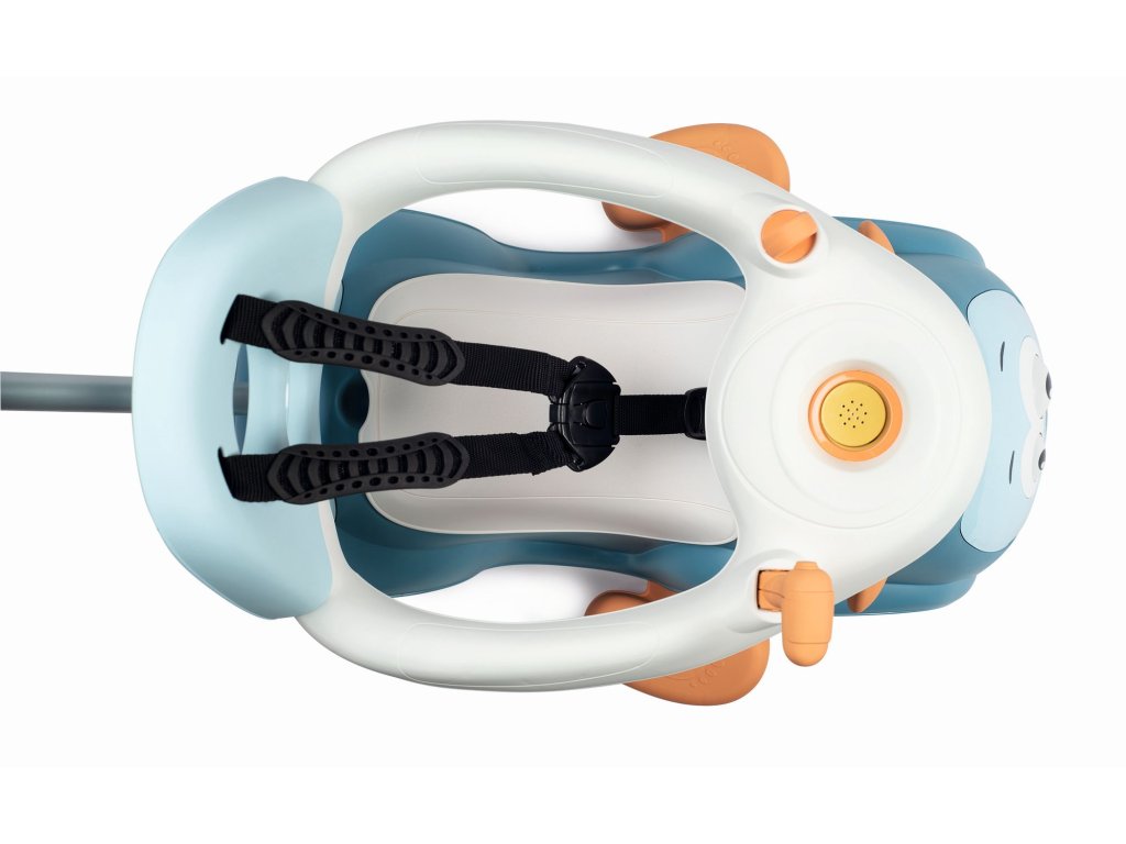 Odrážedlo pro nejmenší, které poroste s dítětem. Odnímatelné rodičovské madlo, snímatelný ochranný rám a bezpečností pás pro nejmenší děti. Volant se zvuky - 3 zvukové efekty, tichá kolečka, pohyblivá očíčka. Hmotnost: 3,555 kg. Rozměry: 61 x 55 x 44 cm.