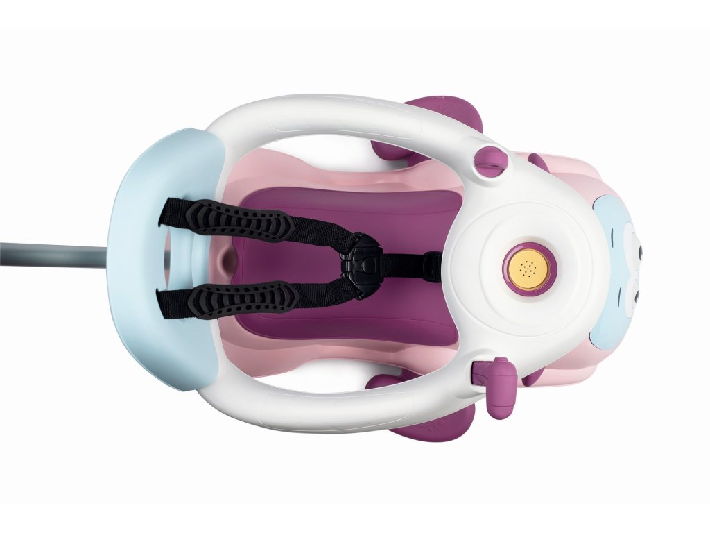 Odrážedlo pro nejmenší, které poroste s dítětem. Odnímatelné rodičovské madlo, snímatelný ochranný rám a bezpečností pás pro nejmenší děti. Volant se zvuky - 3 zvukové efekty, tichá kolečka, pohyblivá očíčka. Hmotnost: 3,555 kg. Rozměry: 61 x 55 x 44 cm.