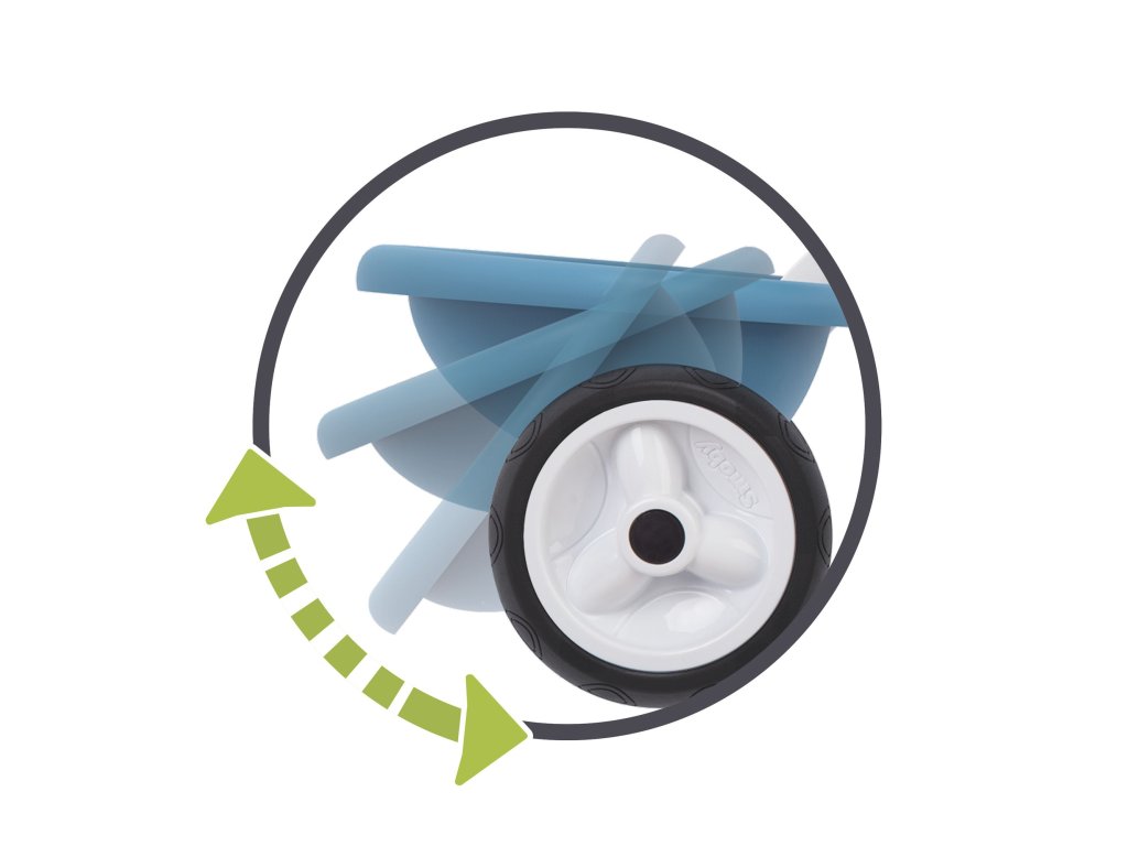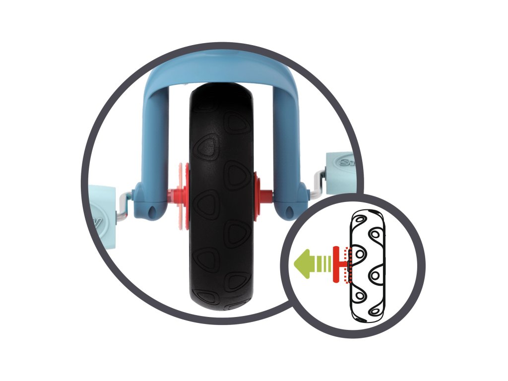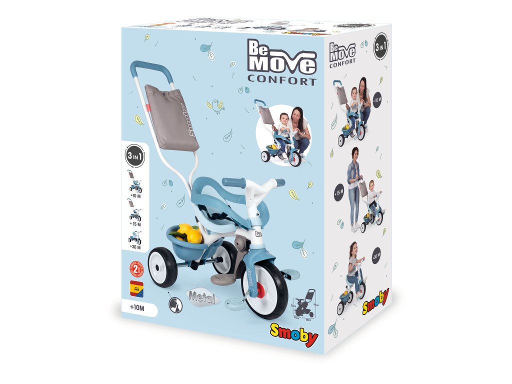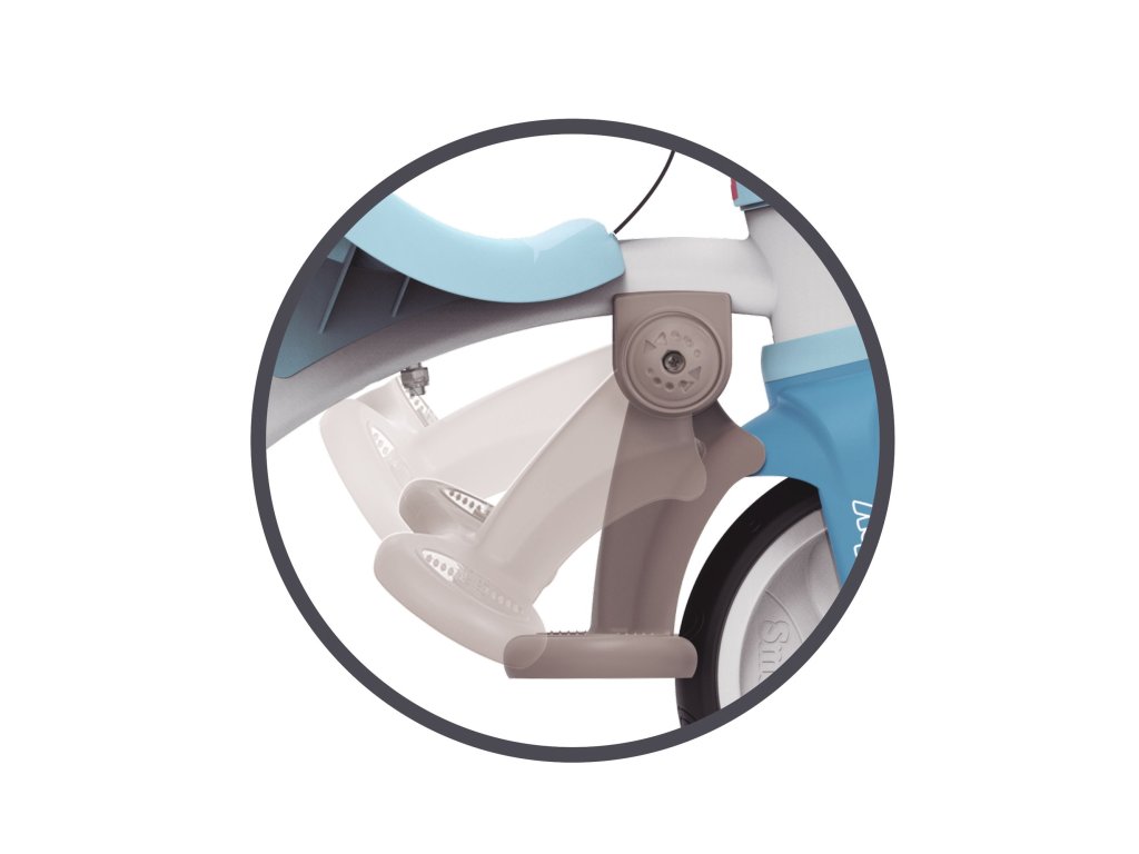 Šlapací tříkolka má kovový rám, odnímatelnou vodící tyč, bezpečnostní ochranný rám a pás, možnost zablokování šlapadel, výklopný plastový košík, nastavitelné ergonomické sedadlo na 2 pozice, plastová kolečka s tichou úpravou. Praktická taška na vodící tyči. Rozměry 68 x 101 x 52 cm.