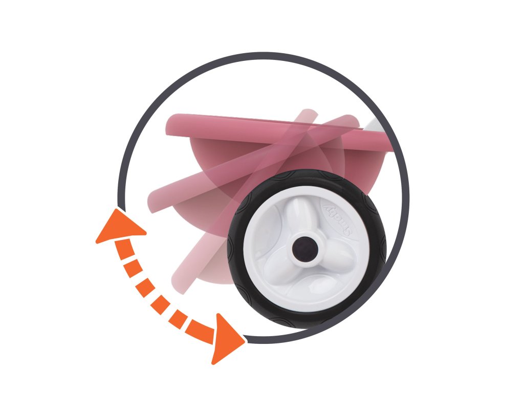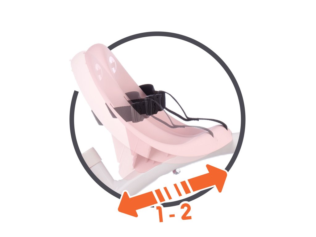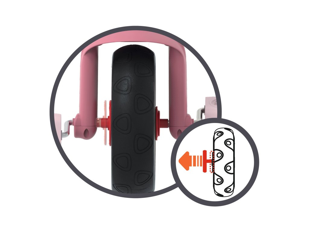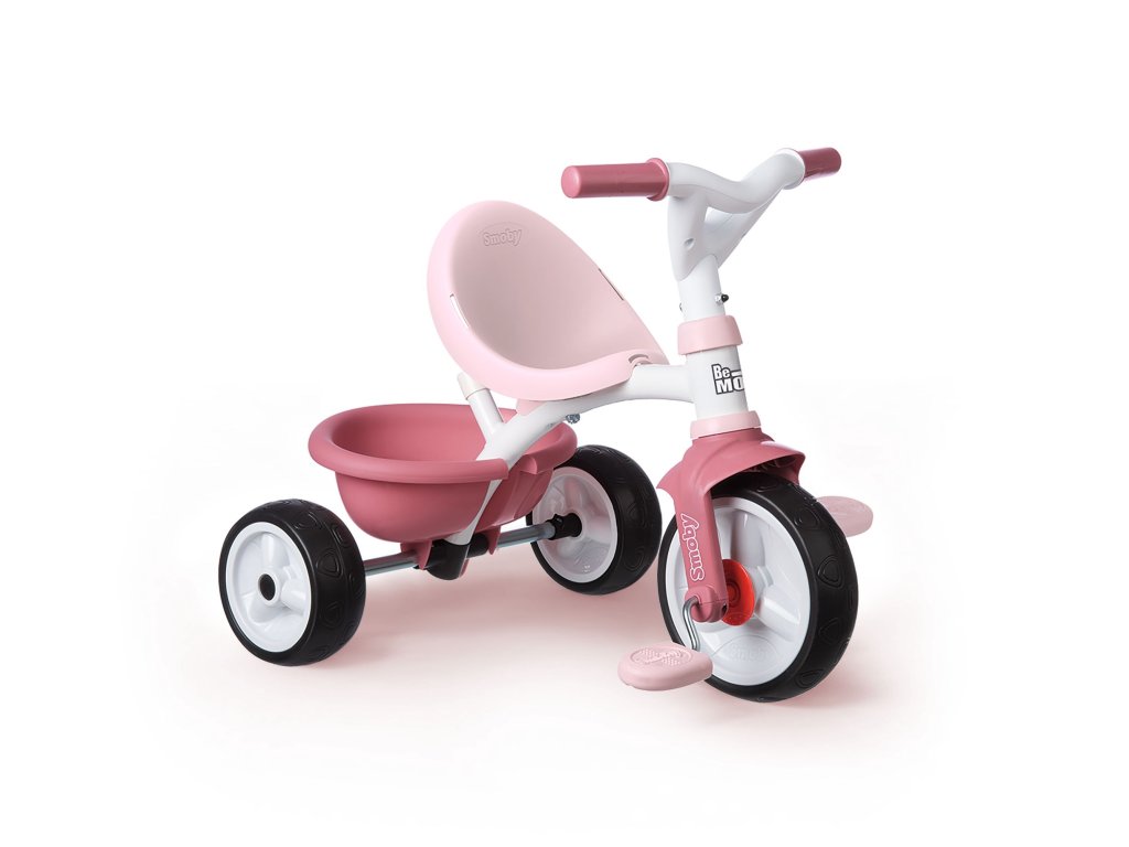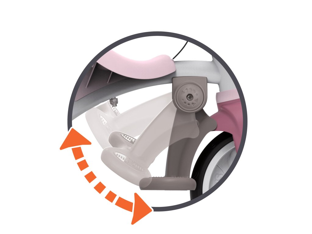 Šlapací tříkolka pro holčičky má kovový rám, odnímatelnou vodící tyč, bezpečnostní ochranný rám a pás, možnost zablokování šlapadel, výklopný plastový košík, nastavitelné ergonomické sedadlo na 2 pozice, plastová kolečka s tichou úpravou. Praktická taška na vodící tyči. Rozměry 68 x 101 x 52 cm.