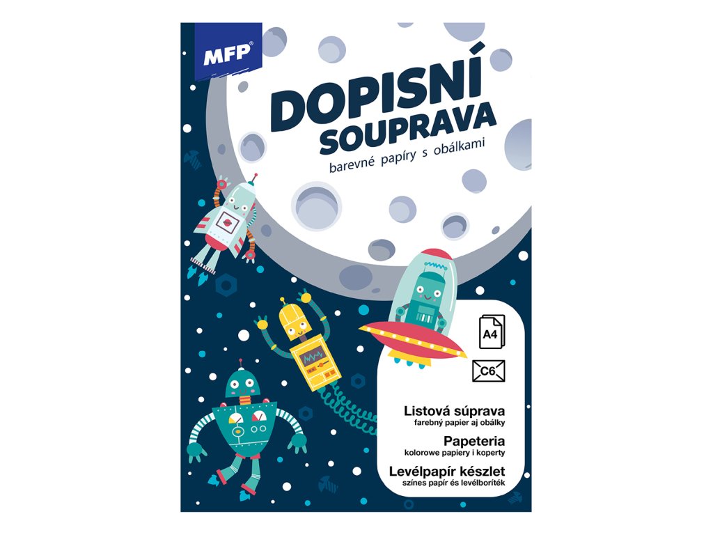 Vesmírná sada pro vaše psaní!S dopisní sadou Vesmír získáte skvělou kombinaci linkovaných listů s veselými vesmírnými motivy. Každý dopis snadno doplníte stylovou barevnou obálkou s motivy robotů a raket, připravených na dobrodružství.BALENÍ OBSAHUJE:- 10 potištěných dopisních papírů formátu A4- 5 barevných poštovních obálek formátu C6FORMÁT: A4MOTIV: vesmírPROVEDENÍ: linkovanýBaleno v plastovém průhledném obalu se závěsem.Uvedená cena je za 1 balení.