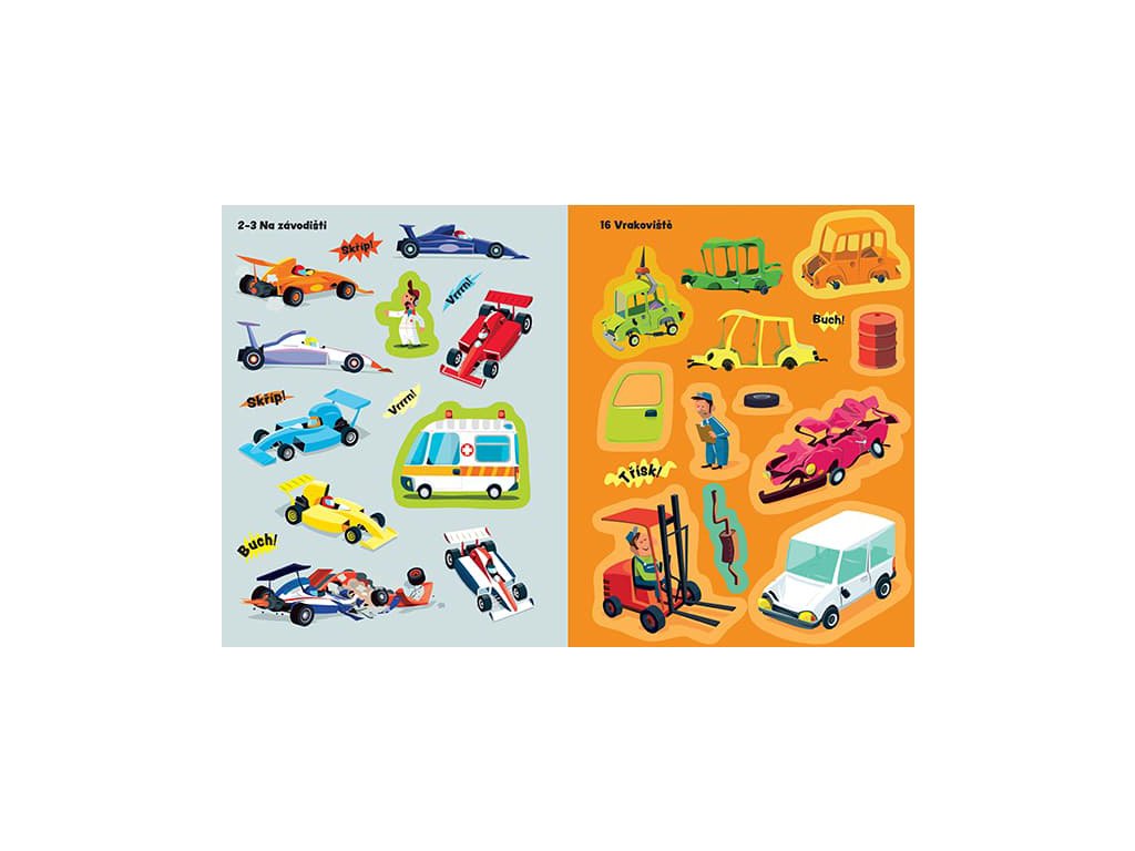 Samolepková knížka obsahuje 16 barevných stran a 8 stran samolepek k dolepení.