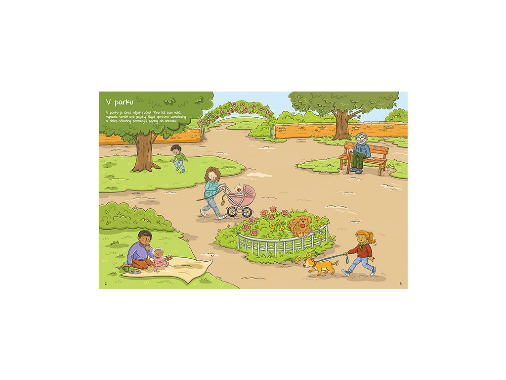 Samolepková knížka obsahuje 16 barevných stran a 8 stran samolepek k dolepení.