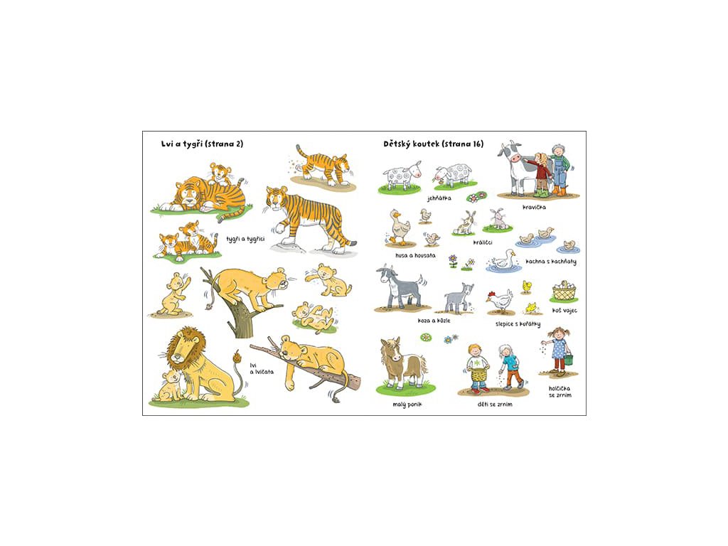 Samolepková knížka obsahuje 16 barevných stran a 8 stran samolepek k dolepení.