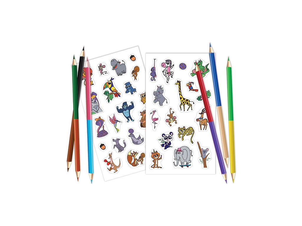 Omalovánky obsahují 96 stran nejrůznějších aktivit, 2 listy samolepek a 6 oboustranných pastelek. To vše v praktickém balení na cesty.