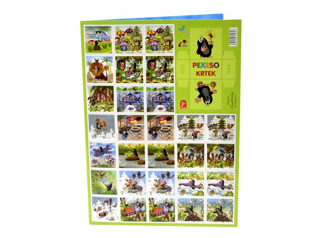 Pexeso Krtek, 32 dvojic a box pro vystřižené kartičky. Obsahuje návod ke hře, pevný karton s lesklou povrchovou úpravou proti oděru.