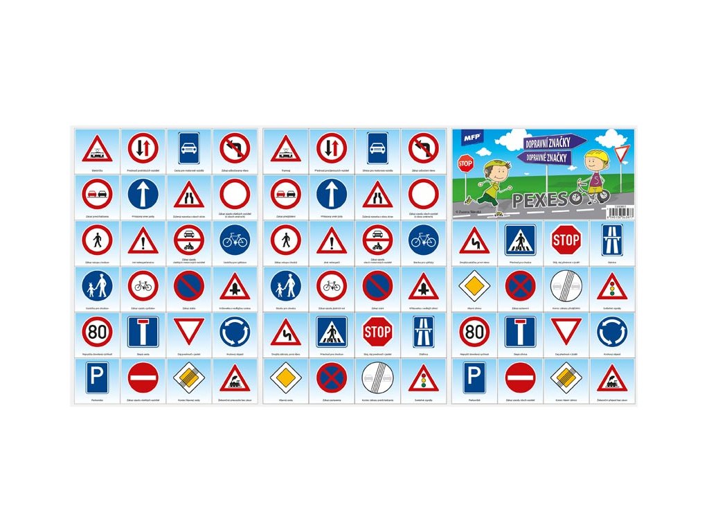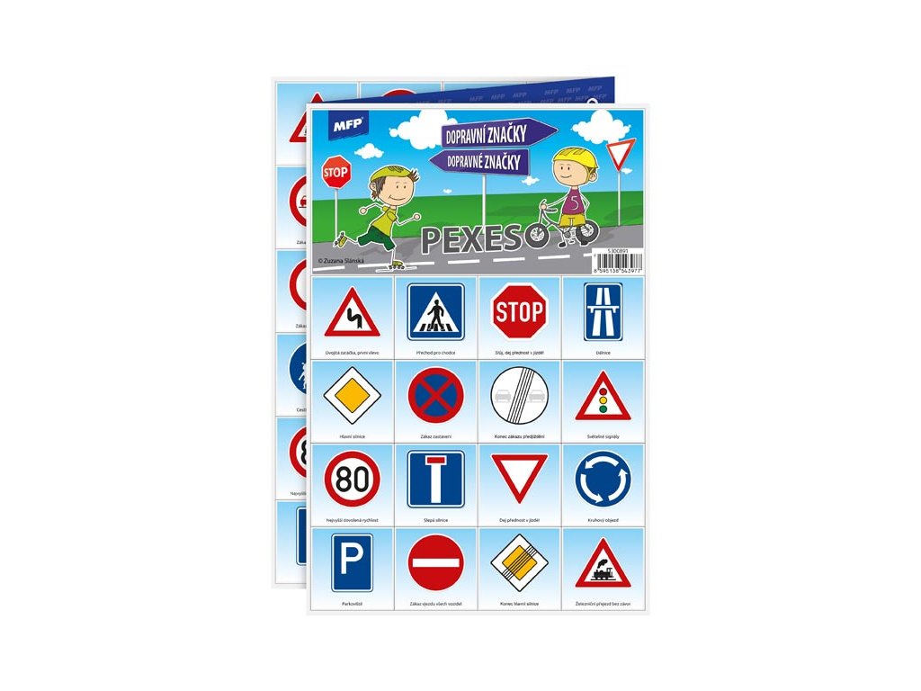PEXESO je populární dětská stolní hra, která nikdy neomrzí a zapojit se můžou i dospělí. Pexeso - Dopravní značky. Vhodné pro děti, které se chtějí naučit poznávat dopravní značky, které na hodinách autoškoly budou umět s přehledem. Věděli jste, že slovo PEXESO vzniklo souslovím slov PEKELNĚ SE SOUSTŘEĎ? Výborná učební pomůcka pro děti a rodiče. Naučte své děti poznávat nová slovíčka a procvičujte jejich paměť. Tato hra je zabaví na dlouhé hodiny.Pexeso se skládá ze tří A4, na kterých najdete 64 kartiček s obrázky dopravních značek a návod ke hře - kartičky jsou s českými i slovenskými názvy.NÁVOD KE HŘE PEXESO:Pexeso mohou hrát nejméně dva hráči. Všechny rozstříhané kartičky zamíchají a rozloží obrázkem dolů do čtverce 8 x 8 kartiček. Nesmí se při tom dívat na obrázek. Hráči si určí pořadí hry. Hráč otočí dvě libovolné kartičky tak, aby si i ostatní spoluhráči mohli obrázky a jejich umístění zapamatovat. Pokud nemají kartičky stejné obrázky, otočí je a vrátí na původní místo. Pokračuje další hráč, který je na řadě. Jestliže objeví stejné obrázky, získává bod a obě kartičky vyřadí ze hry. Pokračuje do té chvíle, kdy otočí dva různé obrázky. Vyhrává hráč, který získá více bodů.PAPÍR: křída matná 350g + lamino lesk 1/1VELIKOST HRACÍCH KARET: 51x51cmVAROVÁNÍ:Nevhodné pro děti do 3 let. Nebezpečí vdechnutí a spolknutí malých částic.Uvedená cena je za 1 ks.