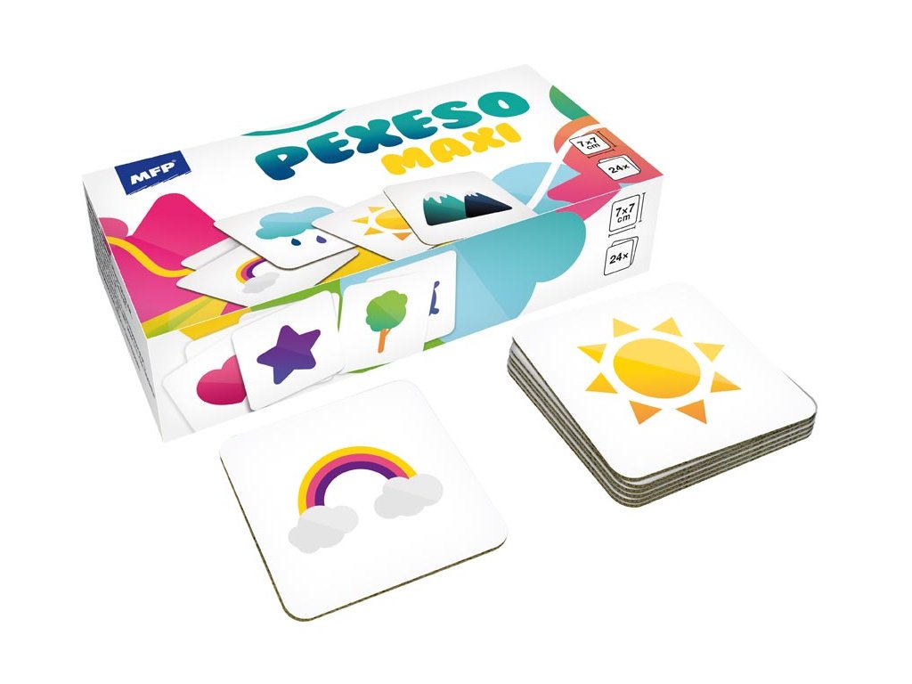 PEXESO je populární dětská stolní hra, která nikdy neomrzí a zapojit se můžou i dospělí. Věděli jste, že slovo PEXESO vzniklo souslovím slov PEKELNĚ SE SOUSTŘEĎ? Výborná učební pomůcka pro děti a rodiče. Naučte své děti poznávat různé předměty ze všedního života a procvičujte jejich paměť. Tato hra je zabaví na dlouhé hodiny.Pexeso se skládá z 24 vyseklých kartiček pexesa. Tloušťka kartonu je 3 mm, aby jej malé děti mohly lépe uchopit a otočit.VELIKOST HRACÍCH KARET: 7 x 7 cmNÁVOD KE HŘE PEXESO:Pexeso mohou hrát nejméně dva hráči. Všechny kartičky zamíchají a rozloží obrázkem dolů. Nesmí se při tom dívat na obrázek. Hráči si určí pořadí hry. Hráč otočí dvě libovolné kartičky tak, aby si i ostatní spoluhráči mohli obrázky a jejich umístění zapamatovat. Pokud nemají kartičky stejné obrázky, otočí je a vrátí na původní místo. Pokračuje další hráč, který je na řadě. Jestliže objeví stejné obrázky, získává bod a obě kartičky vyřadí ze hry. Pokračuje do té chvíle, kdy otočí dva různé obrázky. Vyhrává hráč, který získá více bodů.VAROVÁNÍ:Nevhodné pro děti do 3 let. Nebezpečí vdechnutí a spolknutí malých částic.Uvedená cena je za 1 ks.