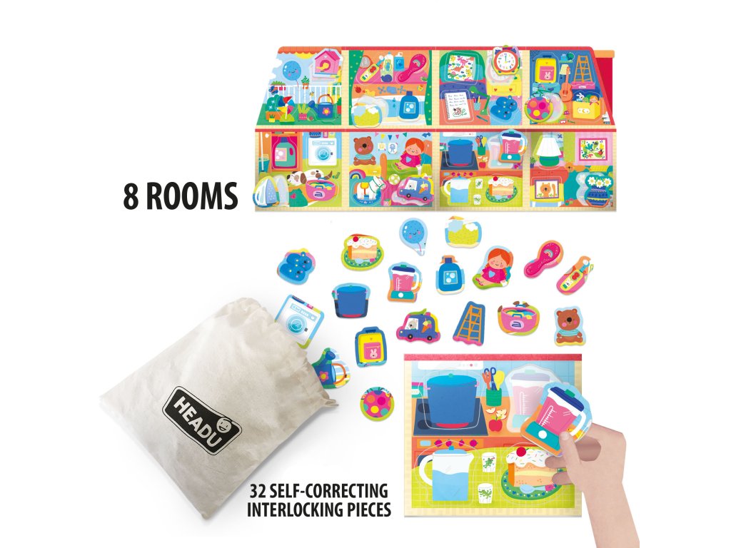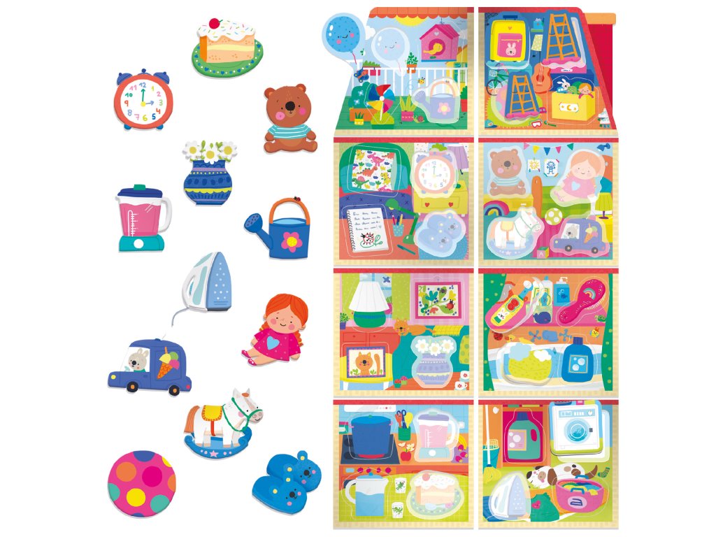 Děti bude bavit skládání šesti skládaček místností a přiřazování 32předmětů do jednotlivých místností a jejich přesouvání a budování velkého domu. Mohou si hrát samy nebo mohou rozdělovat předměty do kategorií podle jednotlivých místností, do kterých patří.