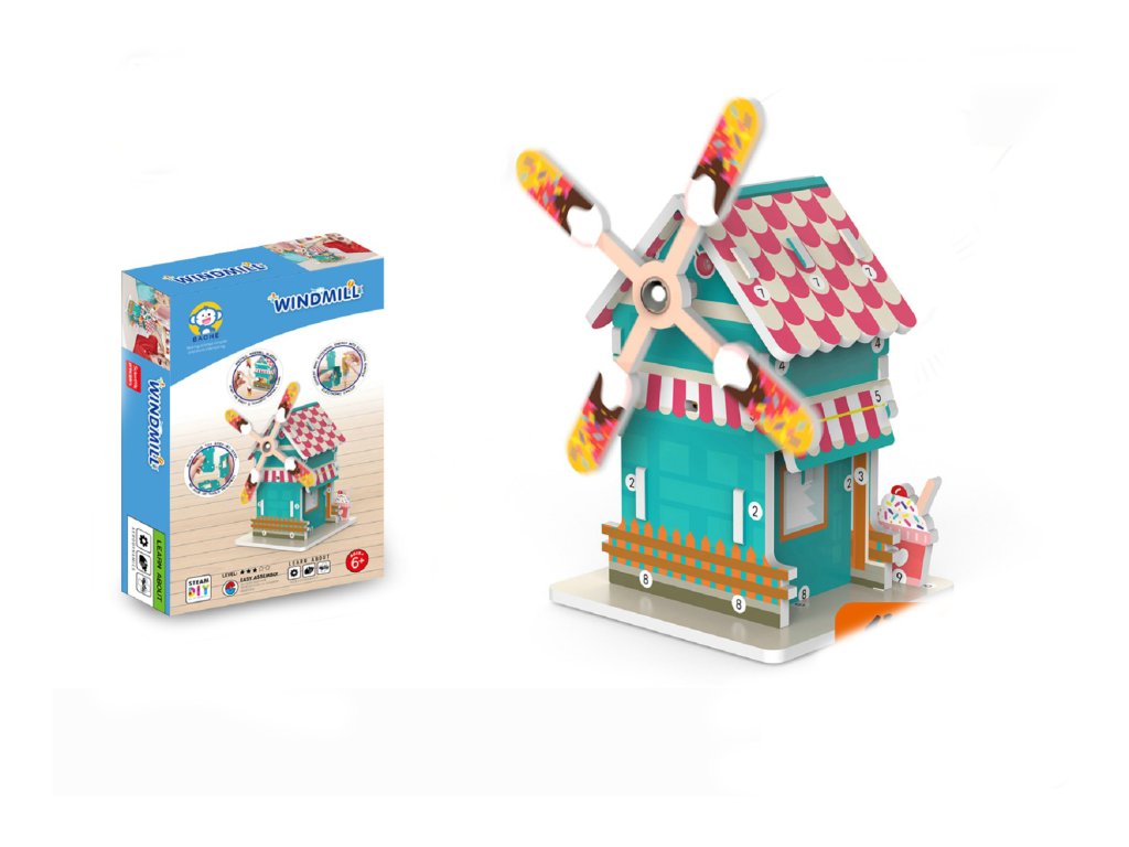 Stavebnice větrný mlýn. 2xAA baterie nejsou součástí.