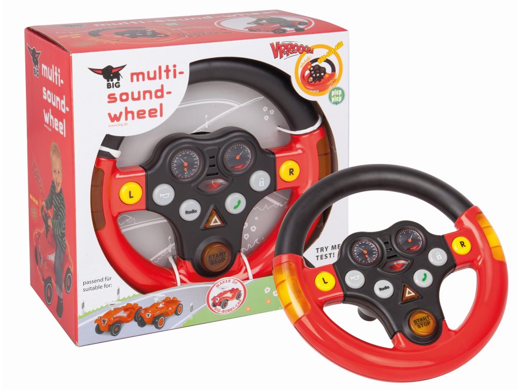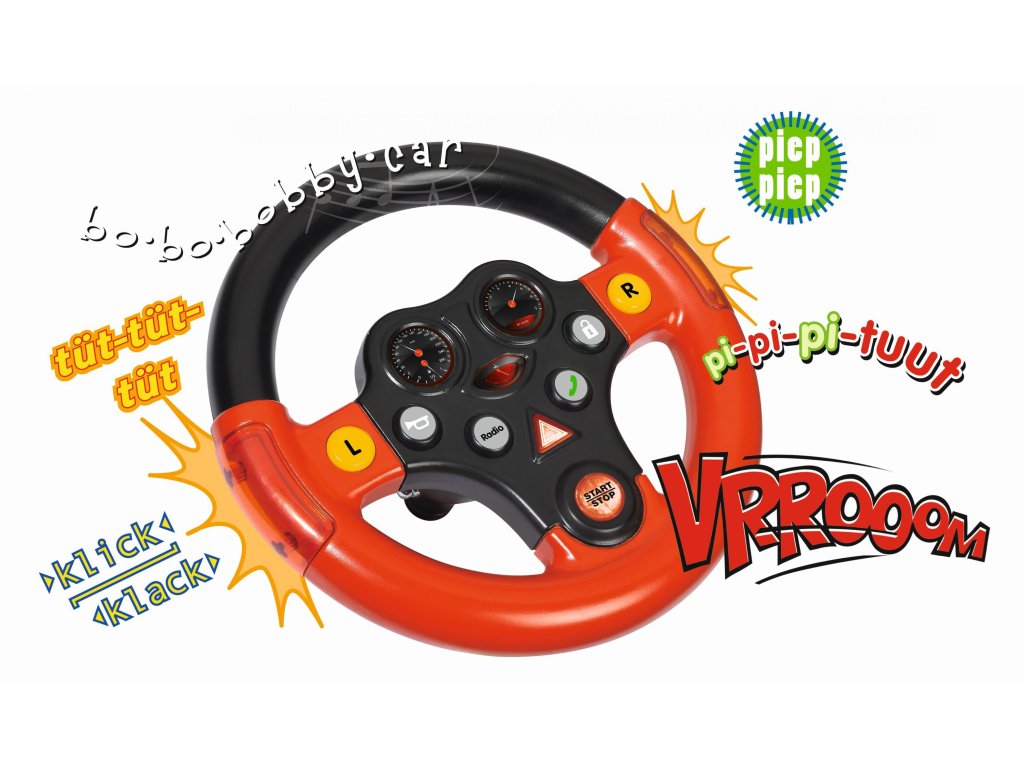 Multifunkční volant se světelnými a zvukovými efekty. Kompatibilní se všemi Bobby Car odrážedly od roku 2010. Funkce: ukazatel odbočení vlevo/vpravo (LED světlo) + přísl. zvuk, zvuk zamykání auta, klakson, zvuk vytáčení tel. čísla a vyzvánění, zvuk startování a samozřejmě rádio. Průměr volantu 19,5 cm. Věk: 1+