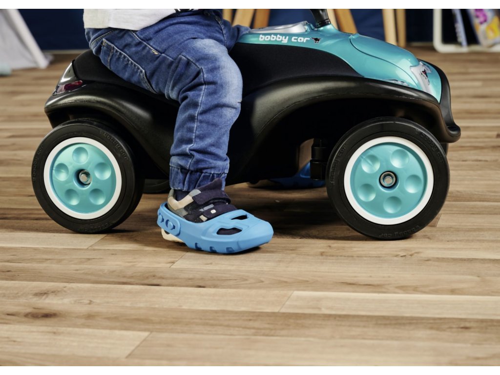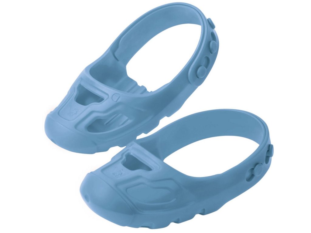 Ochranné návleky na botičky v modré barvě pro jízdu např. na odrážedle, cyklokole apod. Nezanechávají stopy na podlaze, protiskluzová úprava. Snadno nastavitelná velikost pomocí háčků a oček. Vhodné pro dětskou obuv velikosti 21-27.