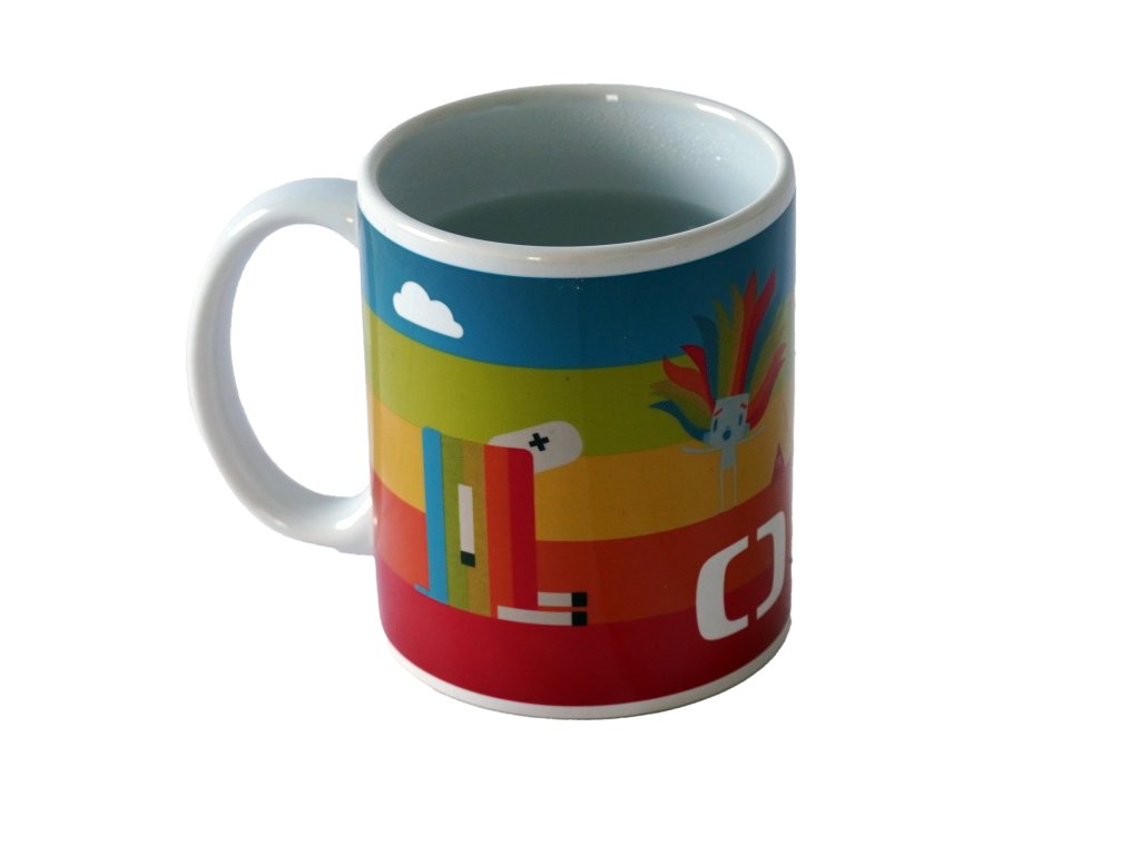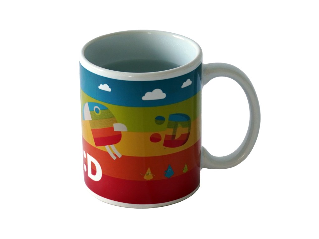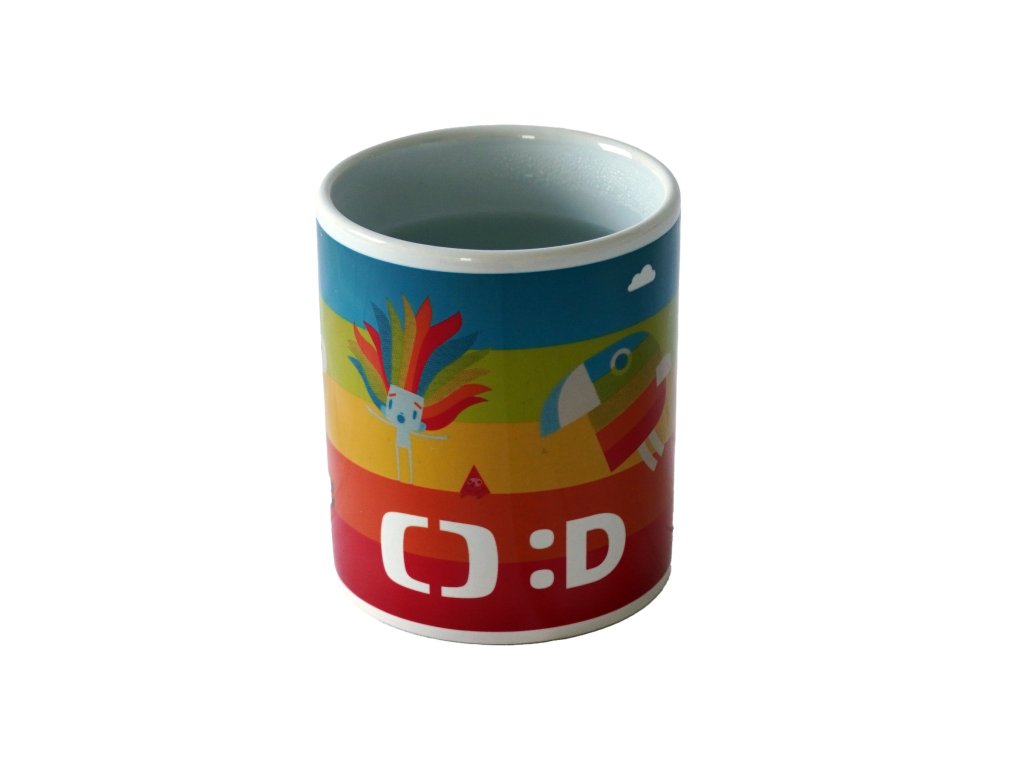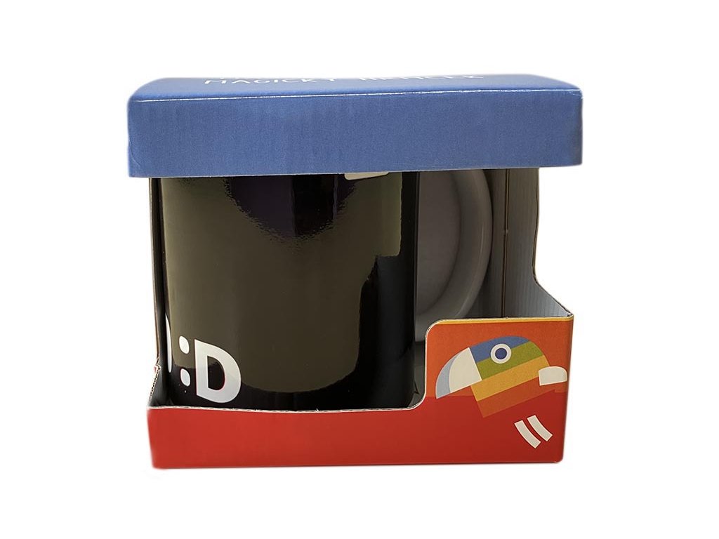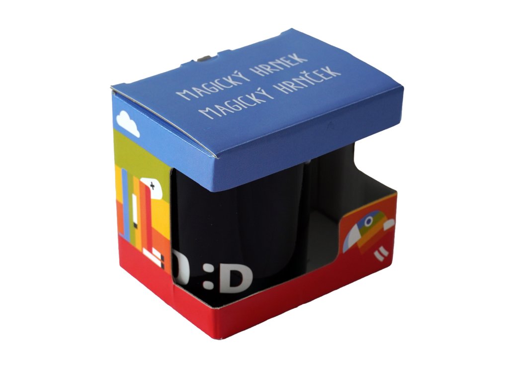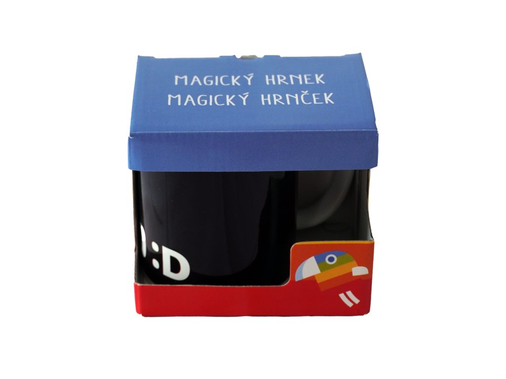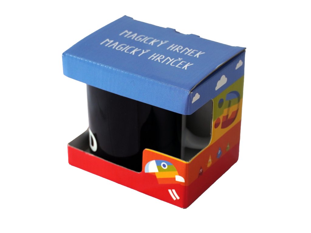 Magický hrneček s licencí Déčko České televize. Vlijte do hrnečku teplou vodu a on odkryje barevné obrázky. Po zchladnutí hrnek opět ztmavne.