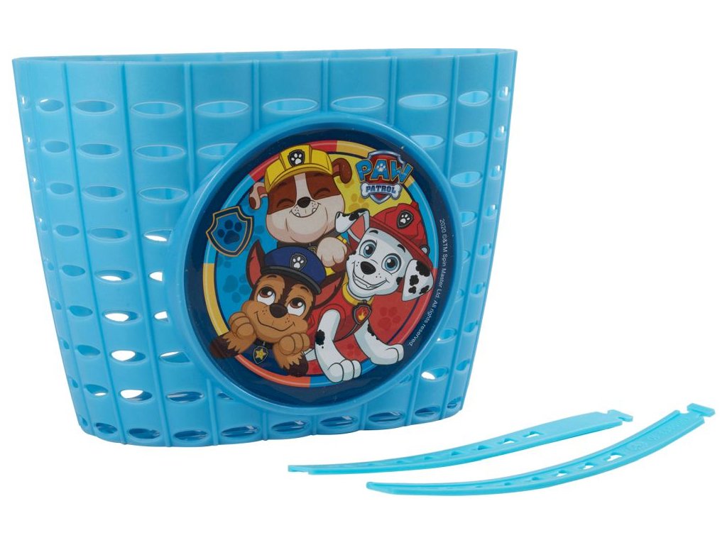 Plastový košík na kolo nebo odrážedlo s motivem Tlapkové patroly. Košíček má plastové pásky pro uchycení na řídítka, toto uchycení je variabilní a lze košík připevnitna jakýkoliv typ kola a odrážedla.