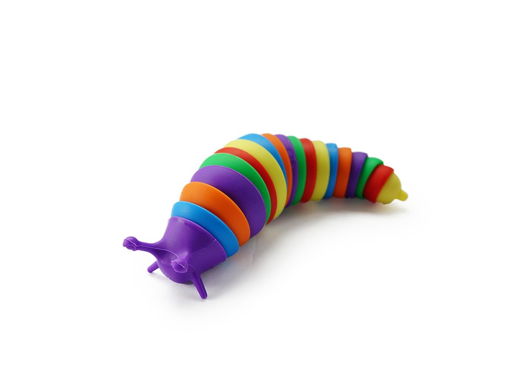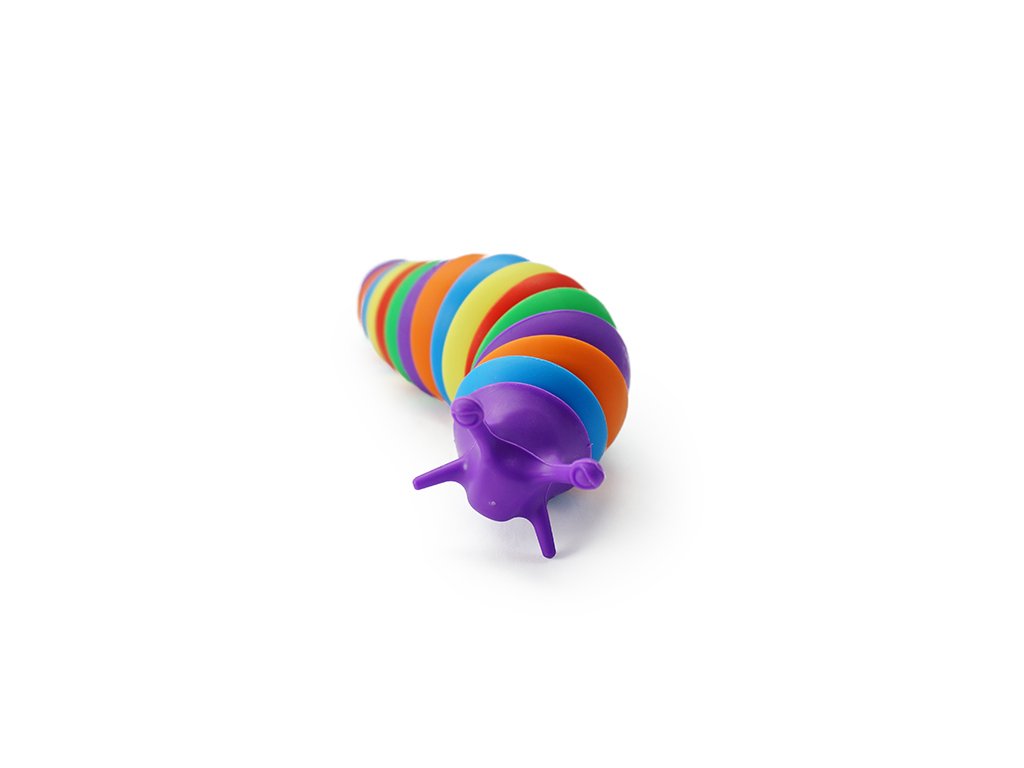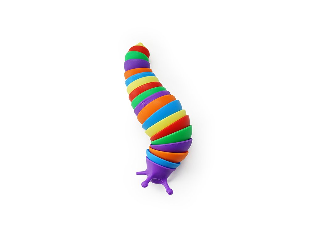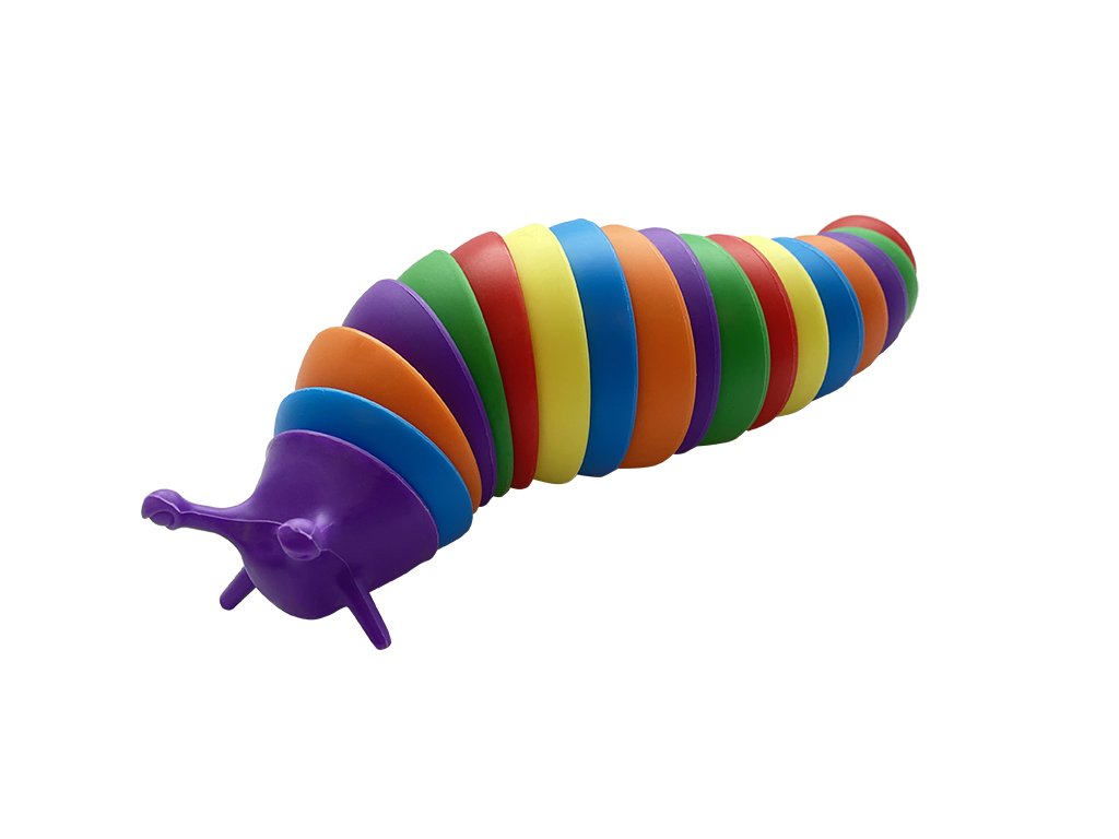 Antistresový slimák je ideální hračkou pro rozvoj motoriky, smyslového vnímání a pro zkrácení dlouhé chvíle. Děti jednoduše zabaví při cestování autem nebo v čekárně u lékaře. Pohyblivé barevné klouby umožňují dětem slimáka tvarovat a libovolně s ním hýbat. Hračka je vyrobena z příjemného plastu, který je lehce omyvatelný. S touto roztomilou kloubovou hračkou zaženou hravě stres a únavu nejen děti, ale i dospělí. Je vhodnou pomůckou pro autistické děti a pro děti s poruchou pozornosti.