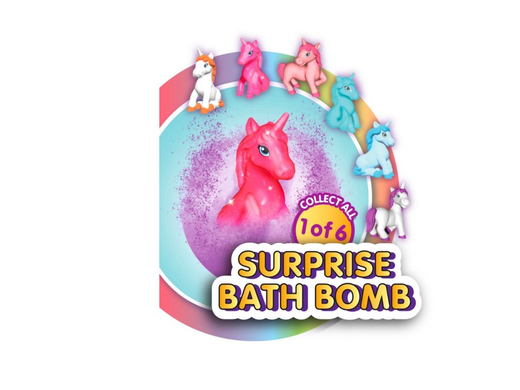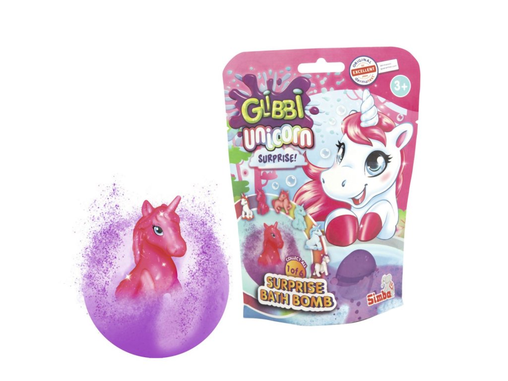 Šumivé vodní bomby ve třech barvách (růžová, fialová, mix) s překvapením - v šumivé kouli se skrývá jeden ze 6 jednorožců. Balení obsahuje 1 bombu do koupele, váha koule 100 g. Bezpečné pro pokožku, neucpává odpad, biologicky odbouratelné.