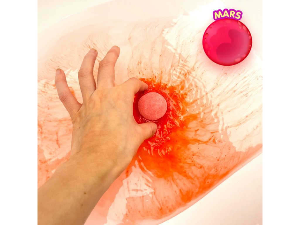 Šumivé barevné bomby do koupele Glibbi Vesmír pomohou dětem naučit se o planetách a Slunci zábavnou formou, během koupání a hraní ve vaně. Sada obsahuje 9 bomb do koupele s hmotnostní 35 g, z nichž každá reprezentuje jednu planetu. Zábavné fakta i naučné infromace o planetách jsou popsány na kartičkách. Bezpečné pro pokožku, neucpává odpad, snadný úklid, nedělá skvrny, biologicky odbouratelné.