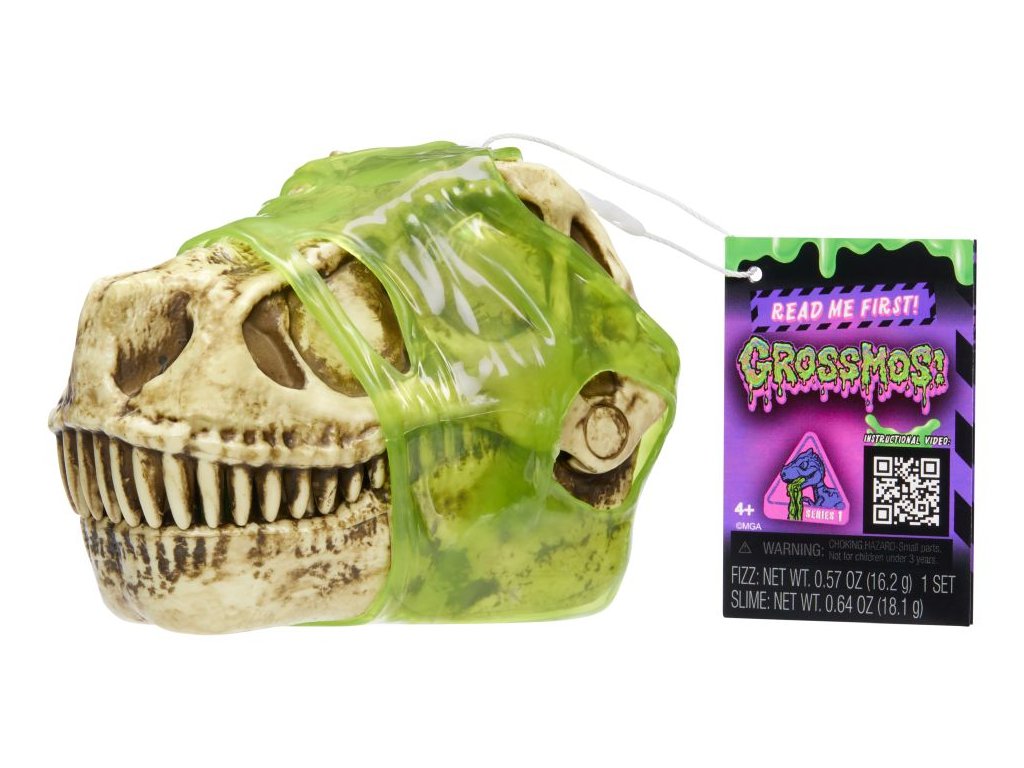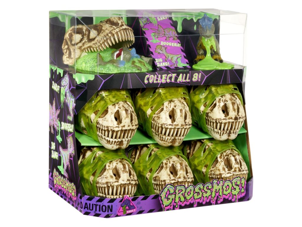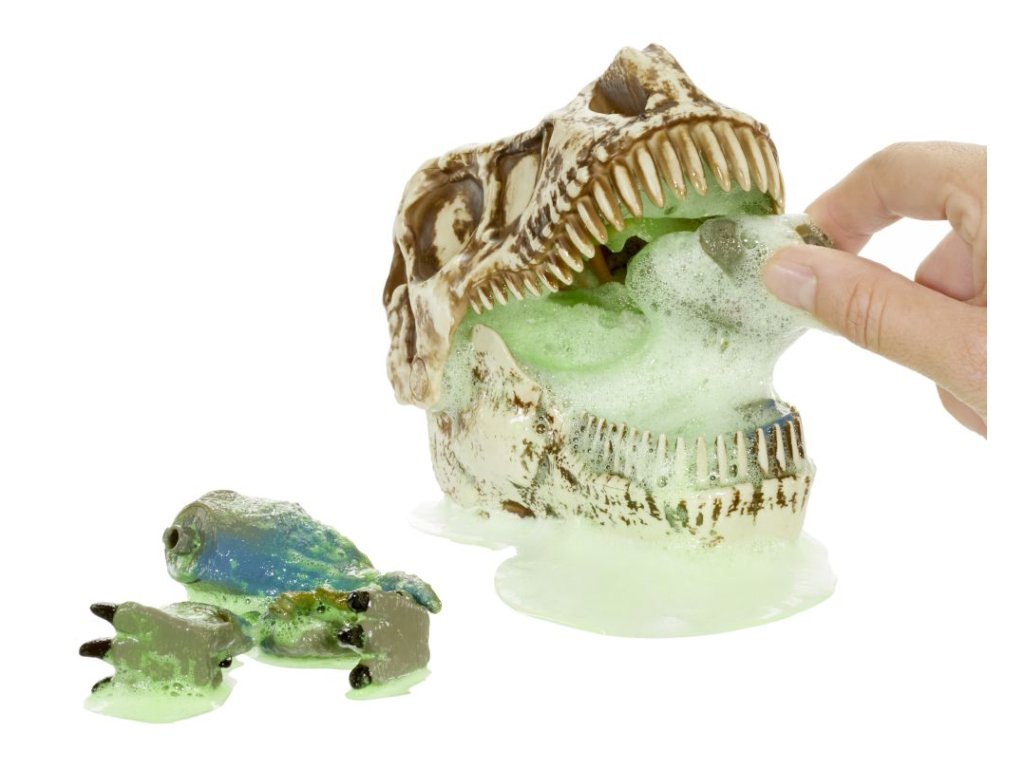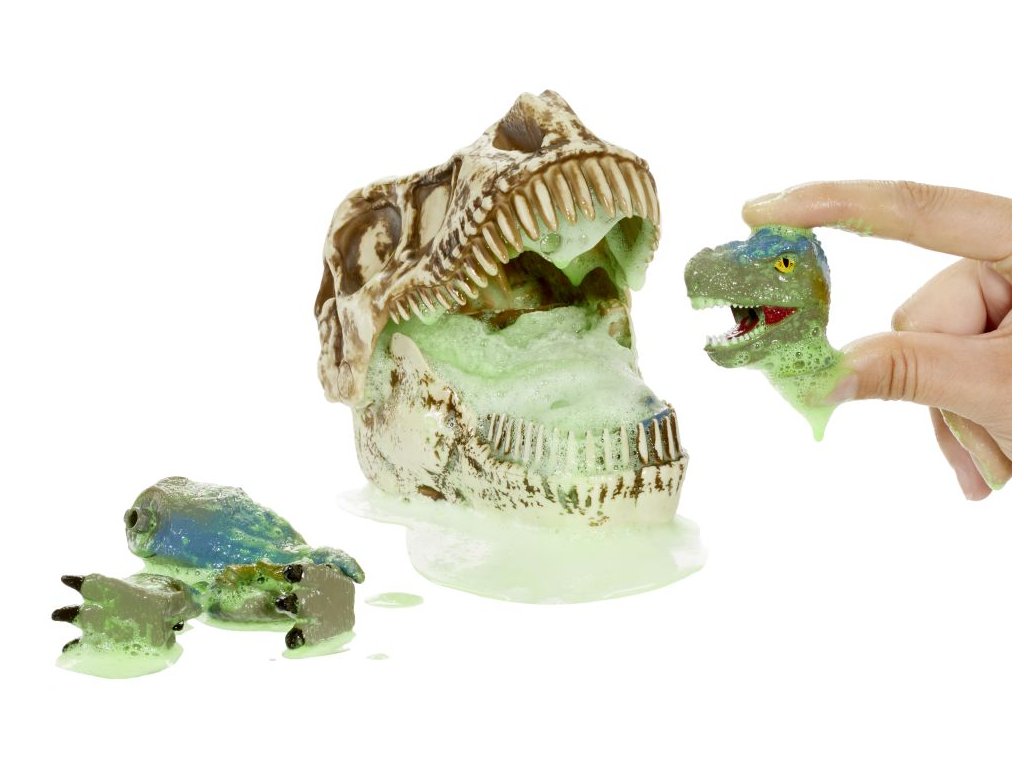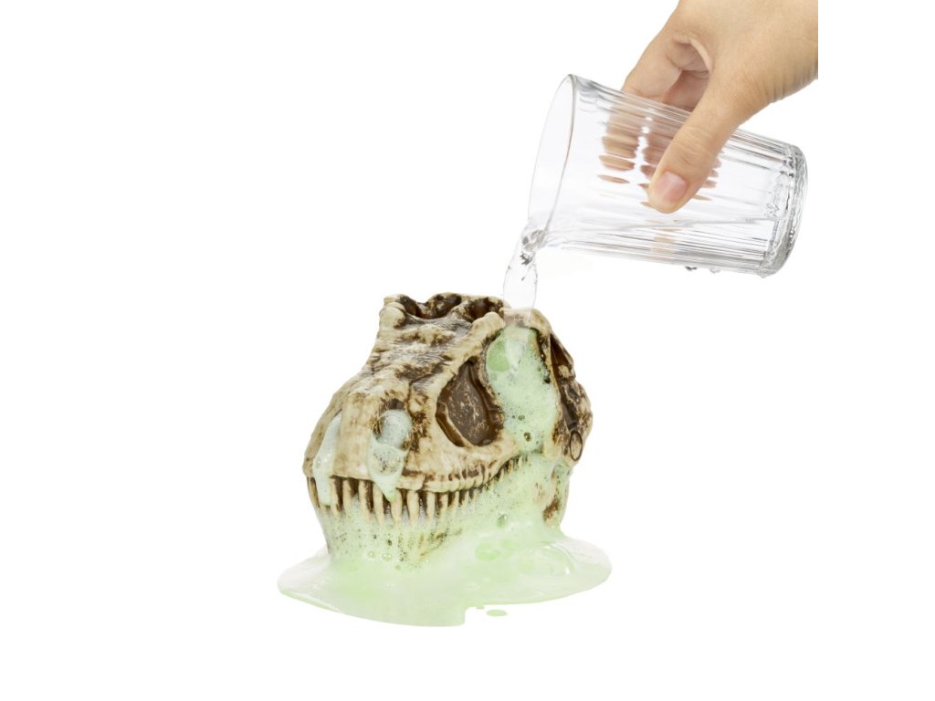 Kosti, pěna, sliz! Wow! Přidej do obrovské dinosauří lebky vodu a sleduj, jak jí začne pěnit u úst. Lebce musíš vypáčit čelist a vyhrabat doplňky a části dinosaura, ze kterých sestavíš menšího dinosaura. Po sestavení mu dej napít zeleného toxického slizu a sleduj, odkud poteče ven! 8 druhů.