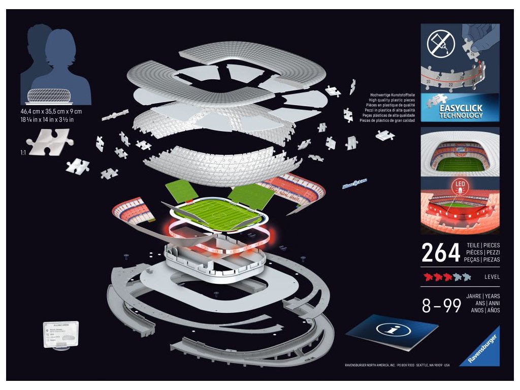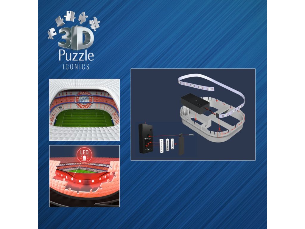 Postavte si osvětlený model Allianz Areny z Iconics edice pomocí stabilních plastových dílků a nechte ho rozzářit pomocí LED světla. Více možností v nastavení světla.