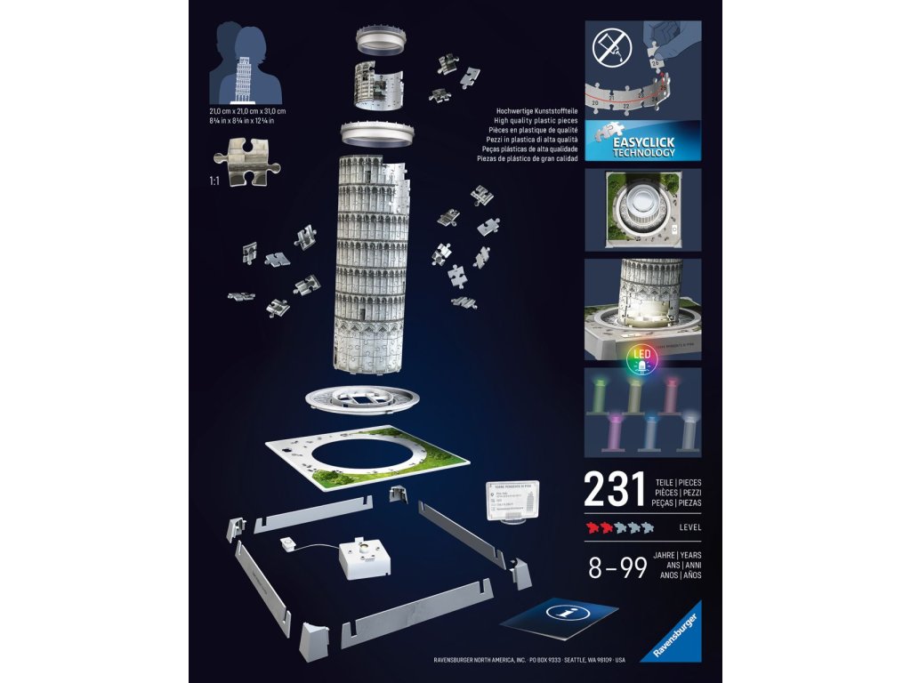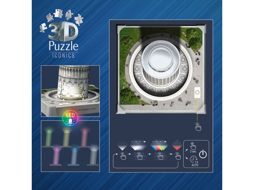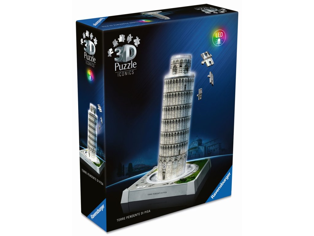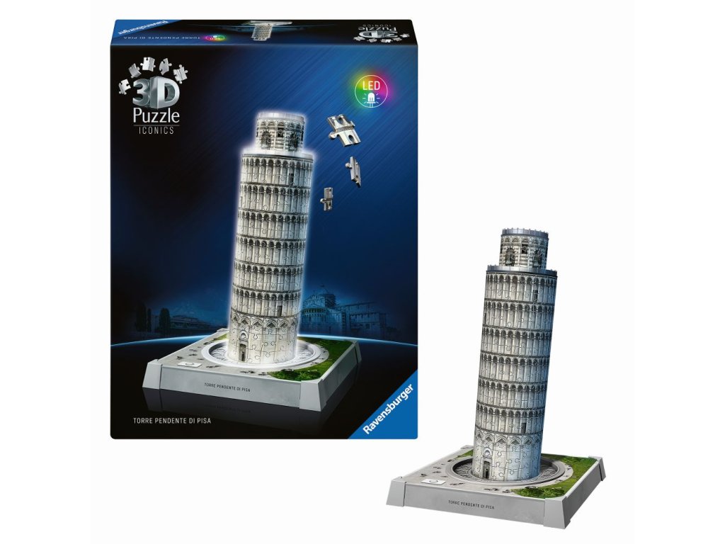 Postavte si osvětlený model věže v Pise z Iconics edice pomocí stabilních plastových dílků a nechte ho rozzářit pomocí LED světla. Více možností v nastavení světla.