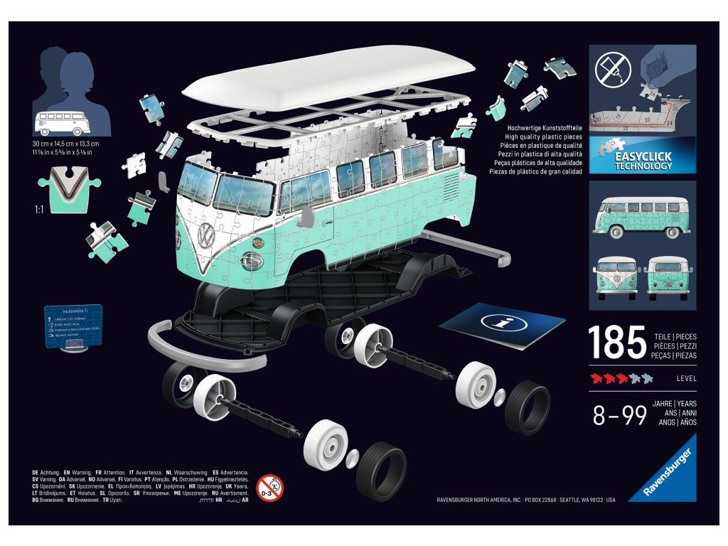 Zažijte jedinečnou kombinaci skládání a stavění a vytvořte si působivý model VW Autobusu. Kvalitní, plastové puzzle s technologií Easyclick. Bez nutnosti lepení!