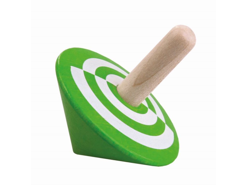 Dřevěná točící káča v zelené barvě pomáhá rozvíjet jemnou motoriku prstů.