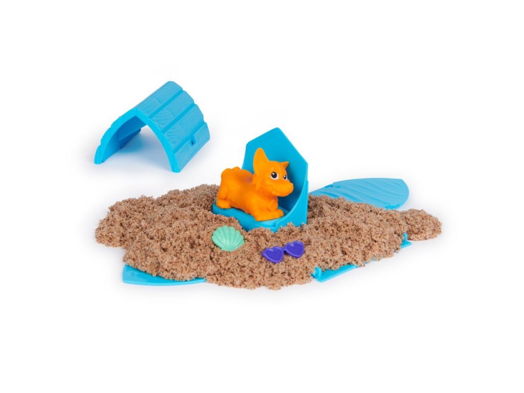 Vykopejte poklad se sadou Kinetic Sand pejsek v boudě s kinetickým pískem! Toto balení kinetického písku obsahuje 170 g plážového písku, 1 ze 4 super roztomilých pejsků, kteří slouží jako víceúčelový nástroj a dva poklady. Kinetic Sand pejsek v boudě s tekutým pískem podpoří představivost a nadšení, když děti pomocí tlapek bígla, mopse, huskyho nebo corgiho prohrabou písek a odhalí ukryté poklady s psí tématikou! Možná dokonce najdou zlatý poklad! Posbírejte 4 pejsky (každý prodává zvlášť) s ukrytými razítky, nožem nebo formičkou, takže si děti mohou hrát nekonečně mnoho způsoby. Opakovaně použitelná nádoba na psí boudu lze složit pro pohodlné skladování. Tento jedinečný kinetický písek je vyroben z přírodního písku, který se lepí k sobě pro snadný úklid! Tvořte stále dokola a nechte ho protékat vašima rukama –? je to tak uspokojující, že ho nebudete moci odložit! Kinetický písek je skvělou alternativou k modelovací hmotě a je vítaným doplňkem k tvořivé dílně, smyslovým hrám, dětským aktivitám a Montessori hračkám. Kinetický písek rozvíjí jemnou motoriku a kreativitu u dětí od 5 let prostřednictvím nezávislé hmatové hry.