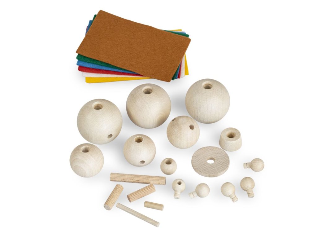 Sada obsahuje 19 dřevěných dílků , 6 barev plstí + návod.
