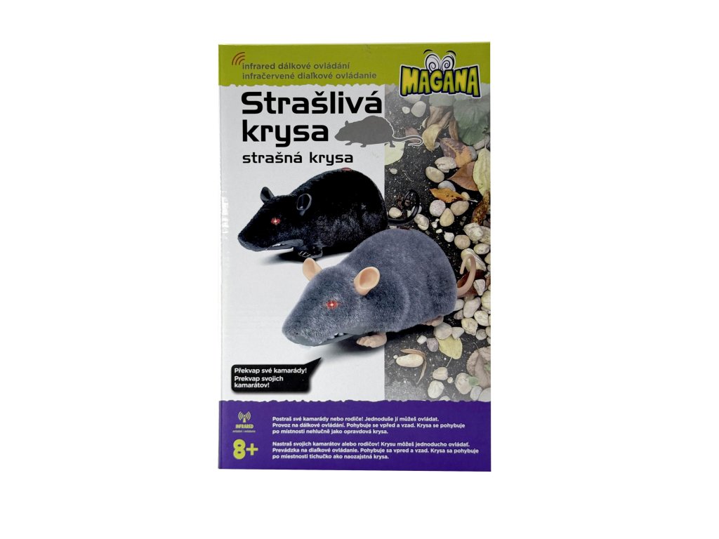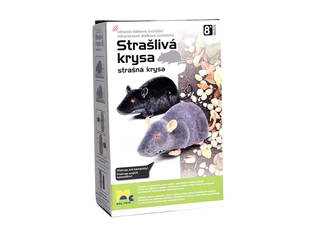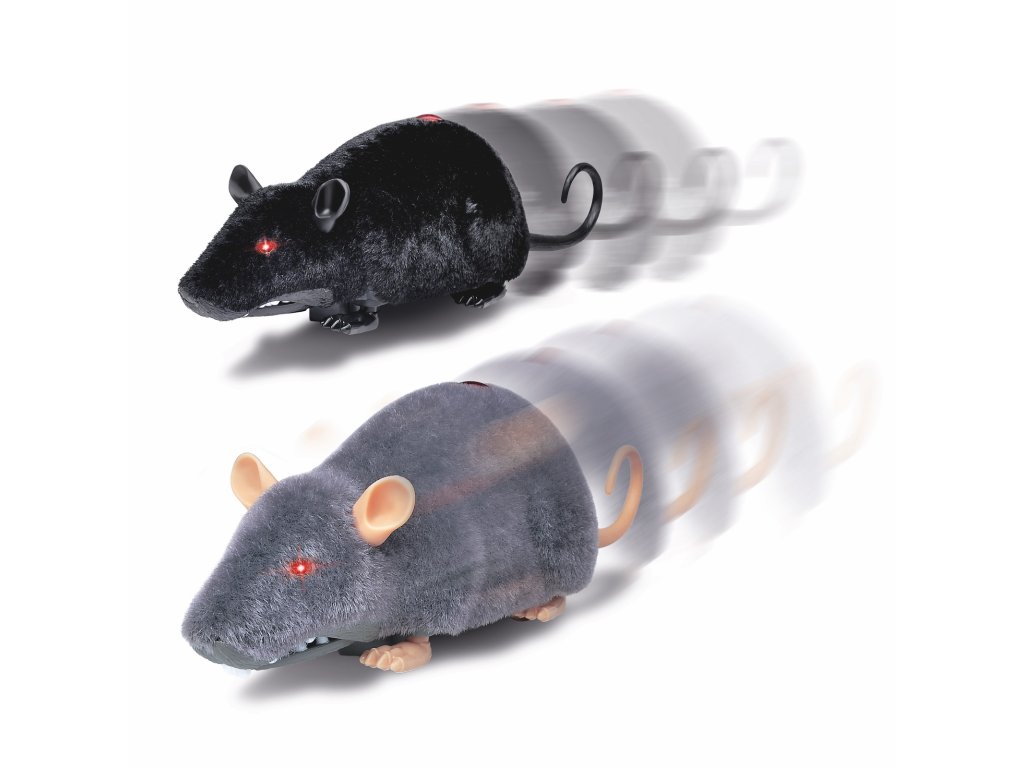 Krysa na dálkové ovládání. Chodí všemi směry. Dvě barevná provedení. Chodí tiše, jako živá myška.