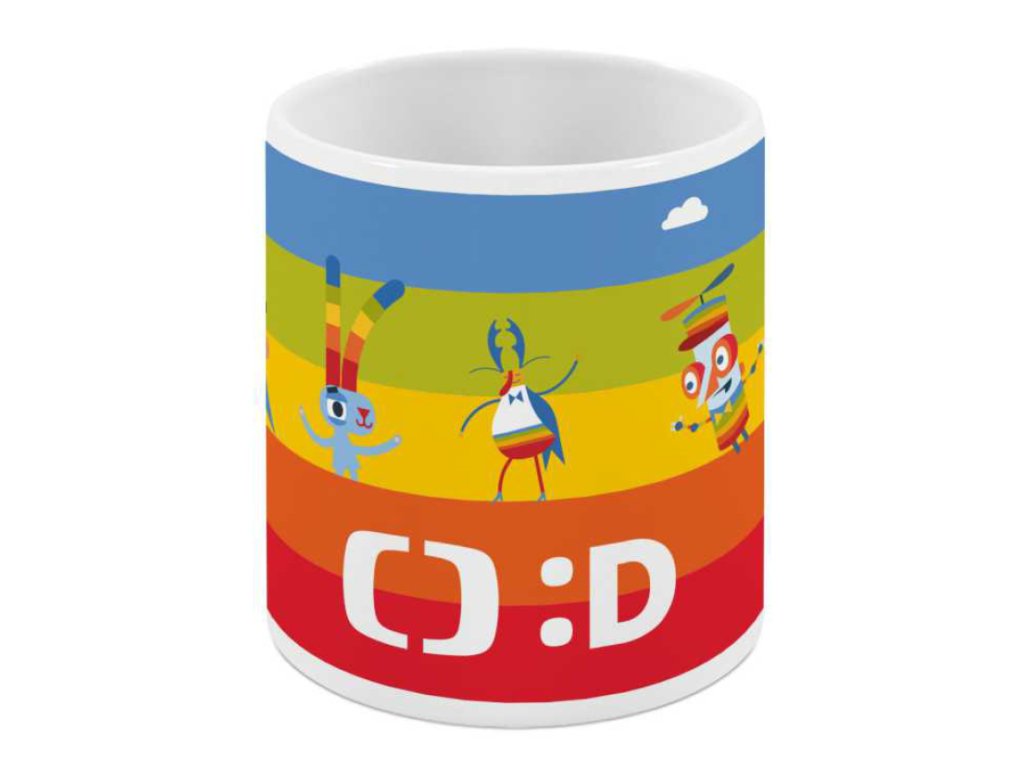 Magický hrneček s licencí České televize. Vlijte do hrnečku teplou vodu a on odkryje barevné obrázky. Po schladnutí hrnek opět ztmavne.