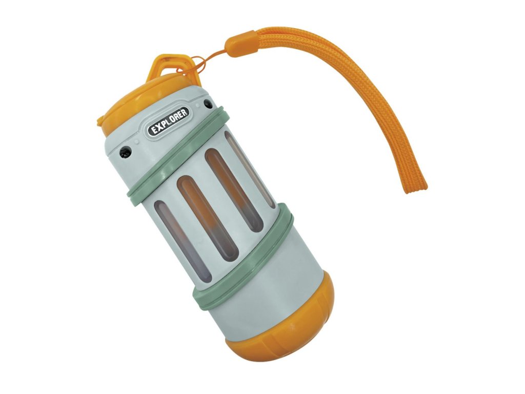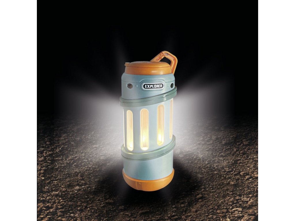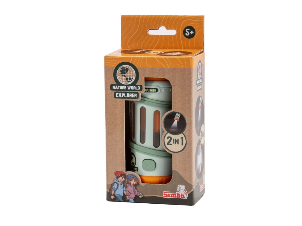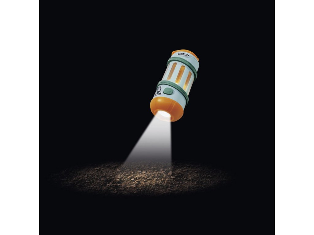 Baterka 2v1 která slouží jako klasická baterka anebo jako stojící svítilna s 360° svícením. S popruhem na zápěstí. Velikost baterky je 13 cm.