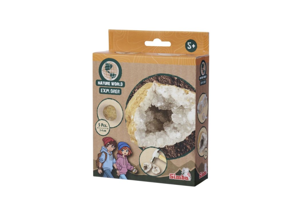 Sada na objevování geod, 5 ks opravdových geod o velikosti 3-4 cm. Součástí jsou ochranné brýle a lupa.