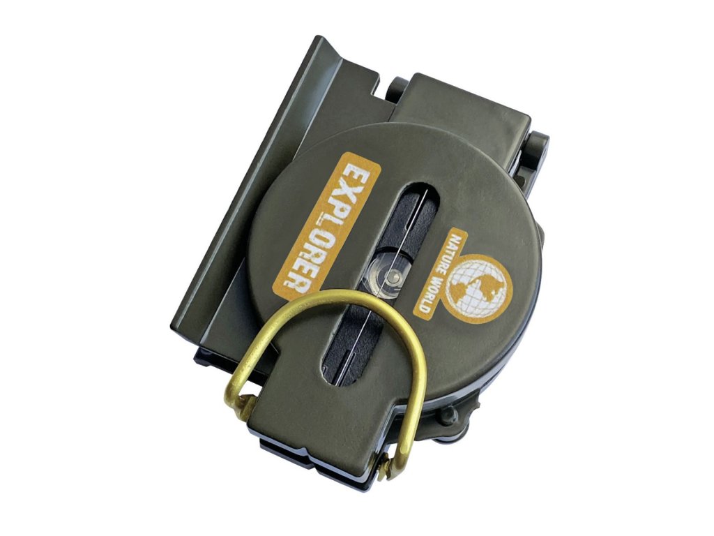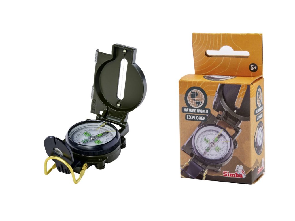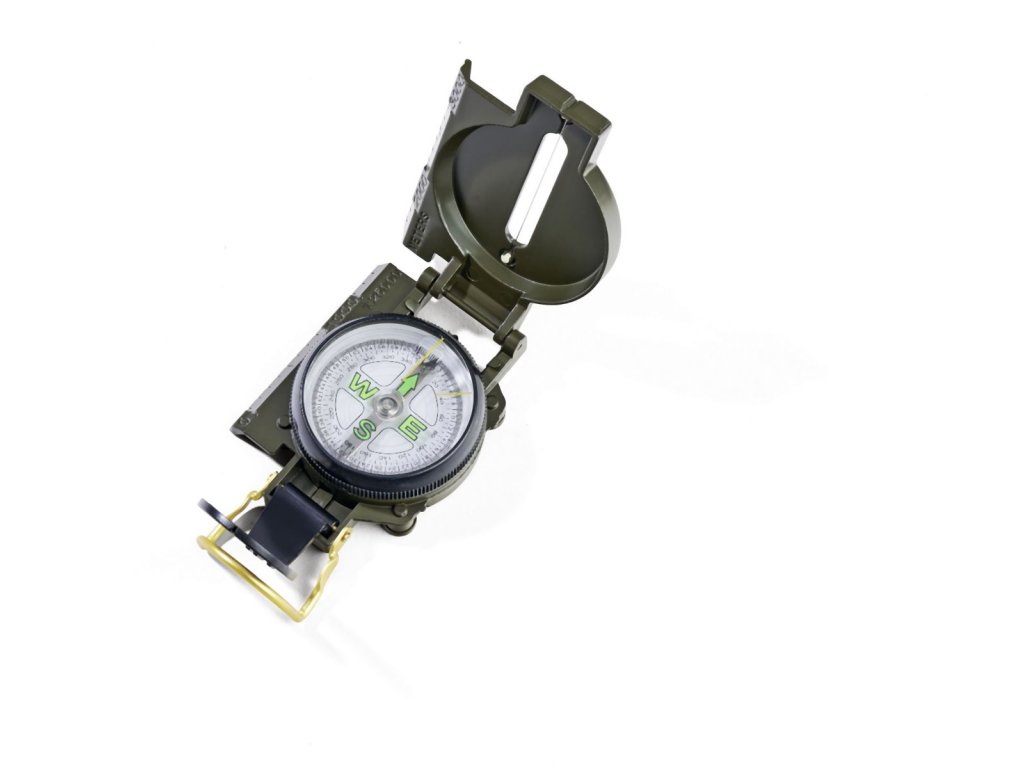 Kompas s kovovým pouzdrem s výklopným víkem a hledí. Velikost kompasu 5,2 cm.