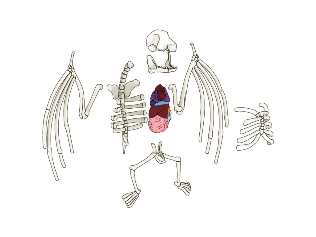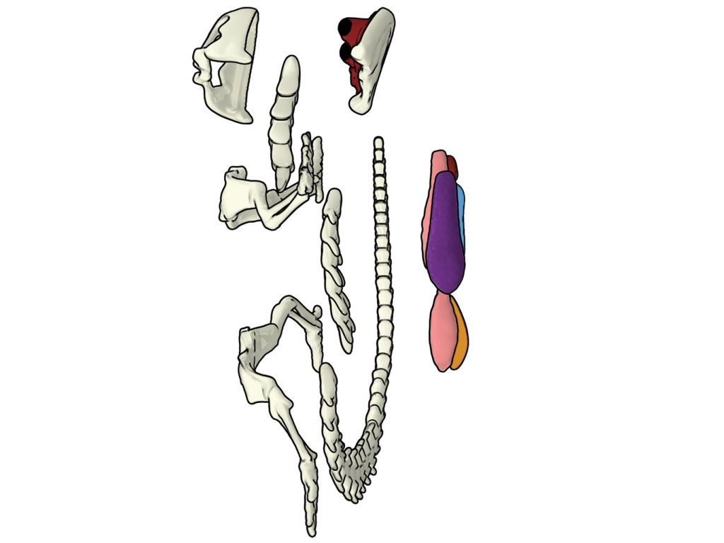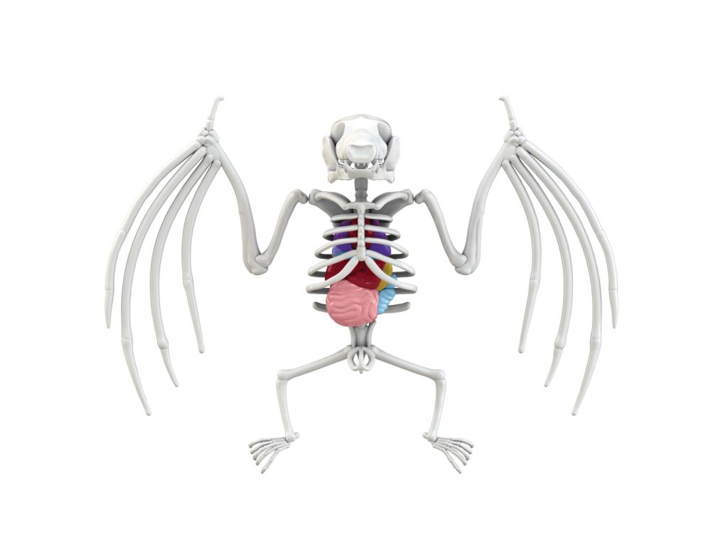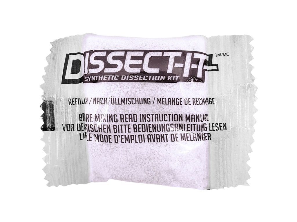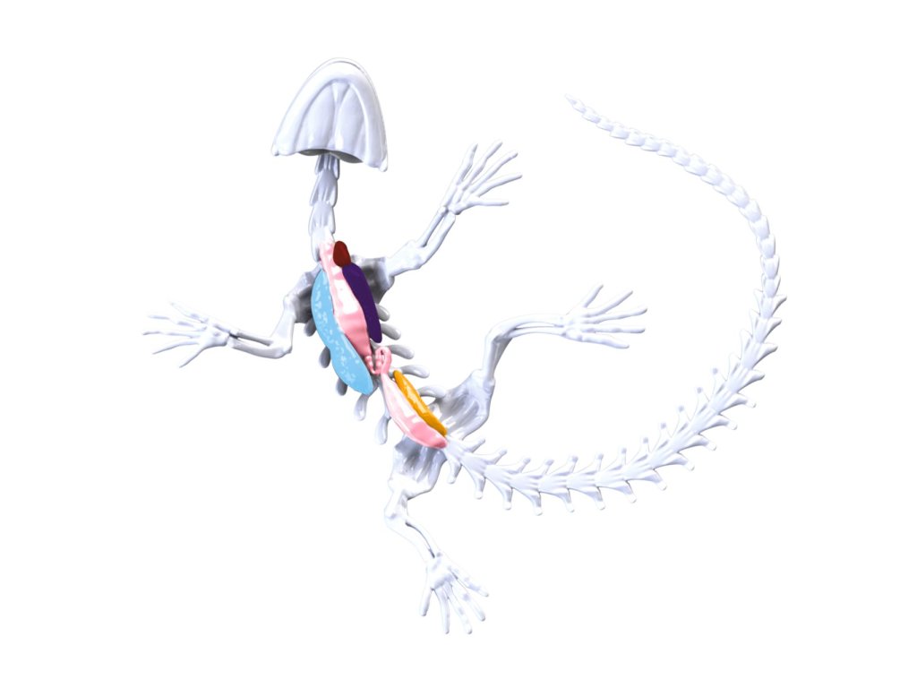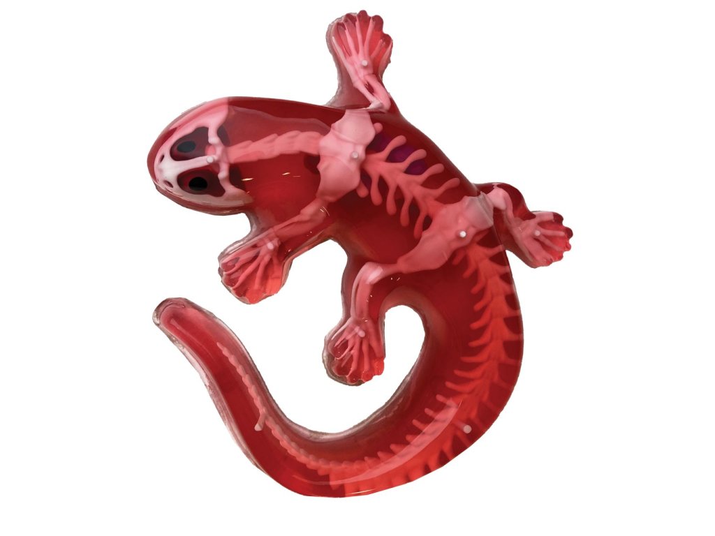 Malá laboratoř pro pitvu žáby, mloka či netopýra, jejichž kosti a orgány jsou pokryty slizem. Součástí je lupa a pinzeta. Velikost 8 cm.