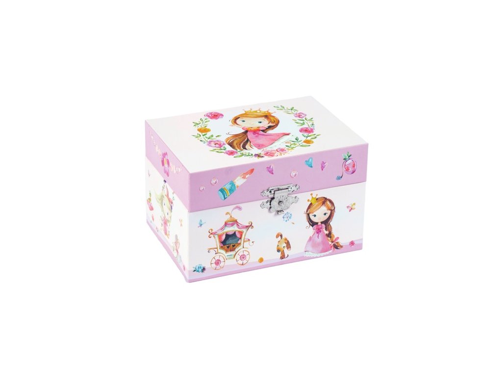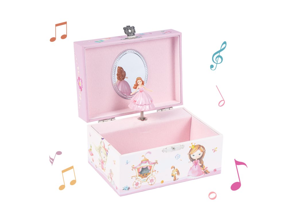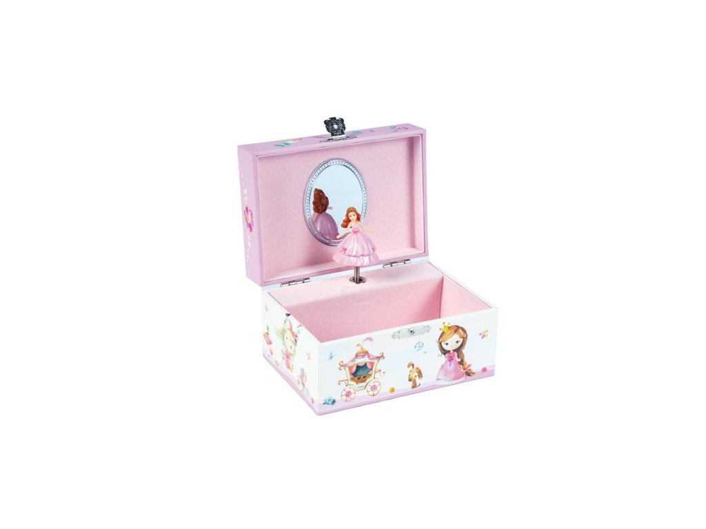 Hrací skříňka s princeznou, která se točí. Skříňka po otevření hraje a princezna se točí. Vyrobeno z tvrdého odolného papíru.
