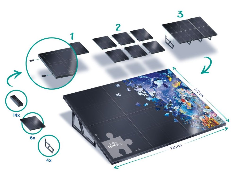 Polohovací podložka pro pohodlné skládání puzzle. Nastavte si svůj vlastní sklon, který vám při skládání puzzle bude vyhovovat.