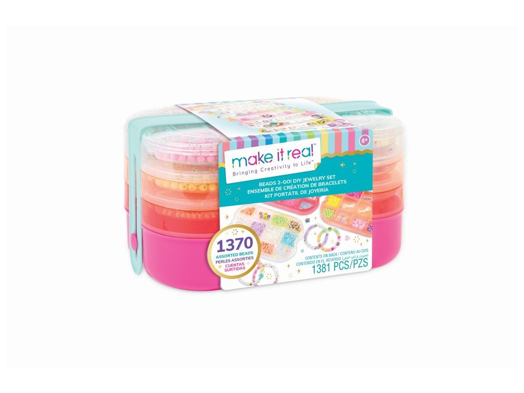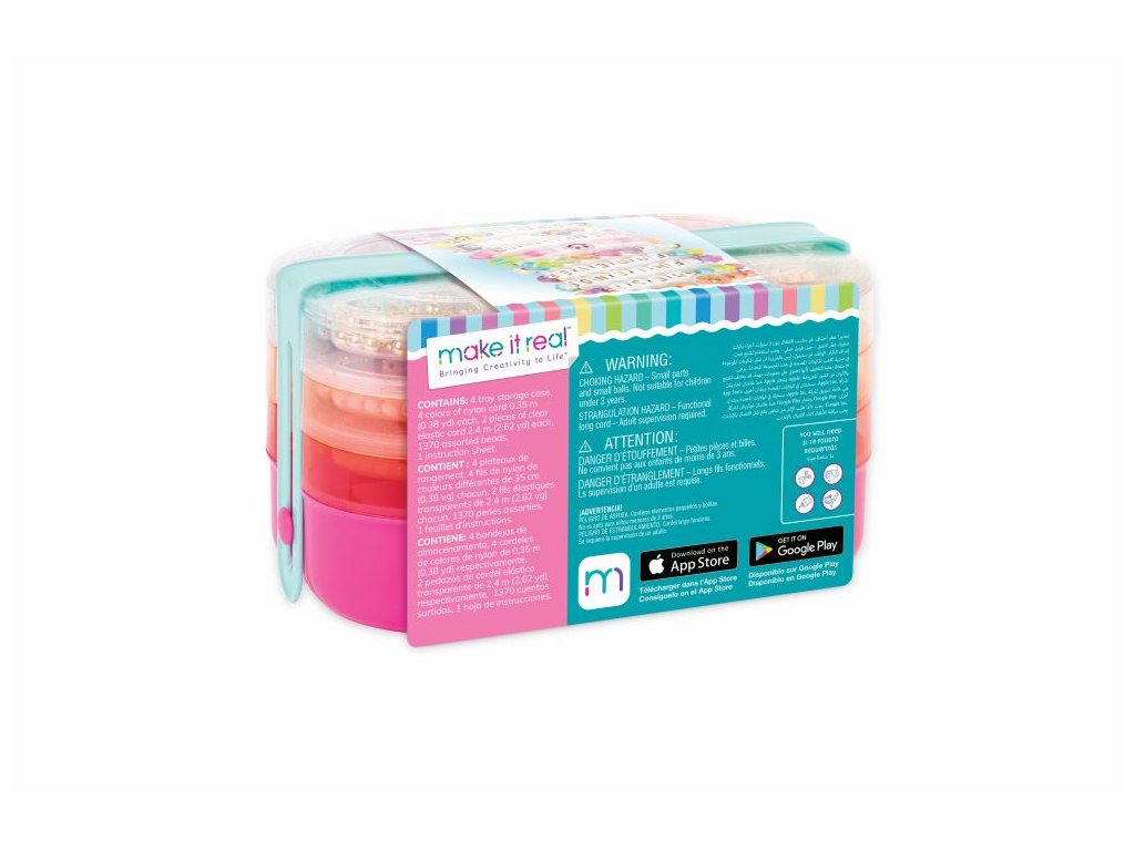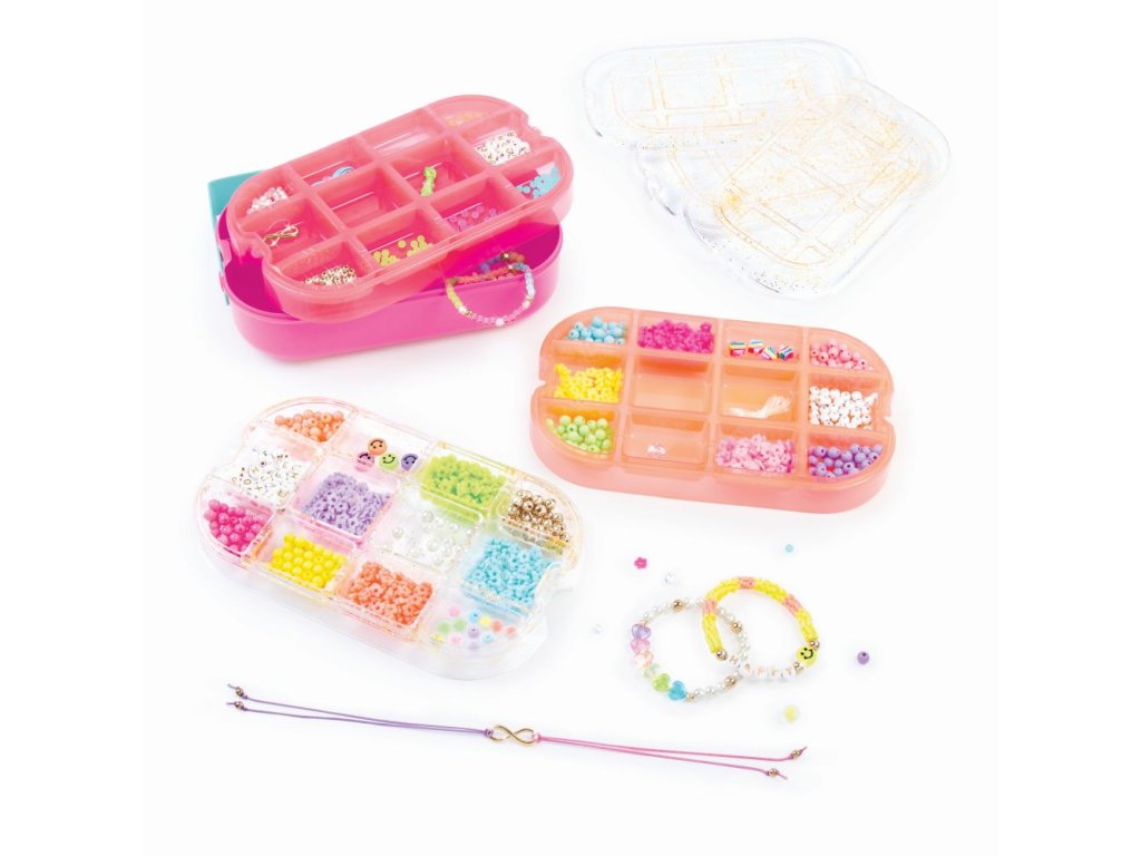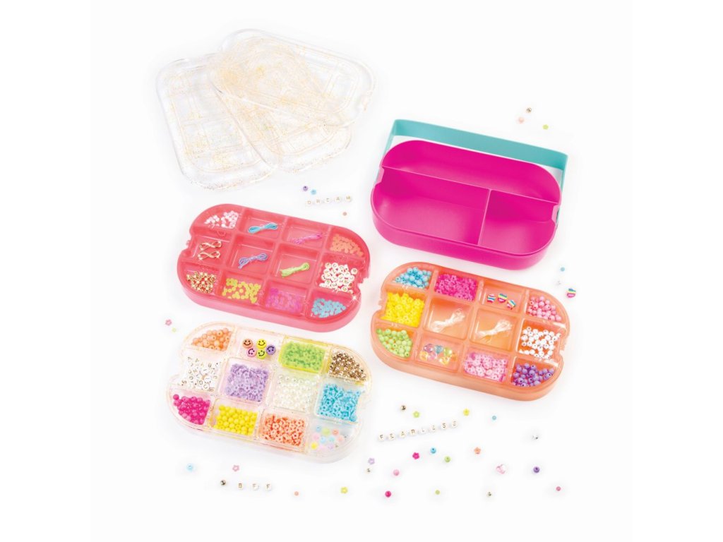 Buďte kreativní na cestách! Tento přenosný kufřík ve stylu bento krabice udrží korálky úhledné a organizované během tvoření i mezi nimi. Podnosy mají užitečné detaily, které pomáhají rozmístit vzory korálků, měřit délku šňůry a organizovat vybrané korálky pro navlékání. Tweens mohou snadno uložit všechny materiály a použít pohodlnou rukojeť k tomu, aby si sadu vzali s sebou na zápasy nebo ji použili všude tam, kde udeří kreativita! Tento chytrý design je dodáván se vším, co nadějný návrhář šperků potřebuje, aby mohl začít hned tvořit, od nejrůznějších kabelů až po 1370 stylových korálků. Vytvářejte šperky a rozšiřte svou sbírku doplňků a obchodujte s přáteli, abyste šířili zábavu. Ideální pro děti od 8 let.