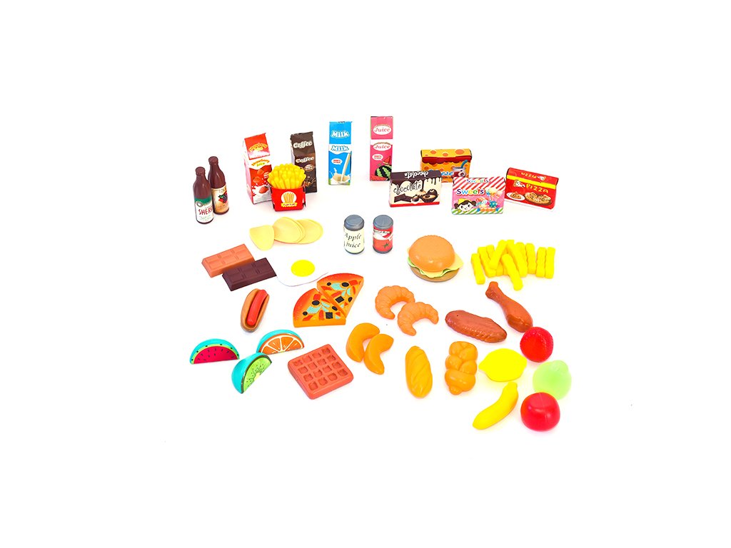 Sada maket potravin. Makety ovoce, zeleniny, nápojů, pečiva…